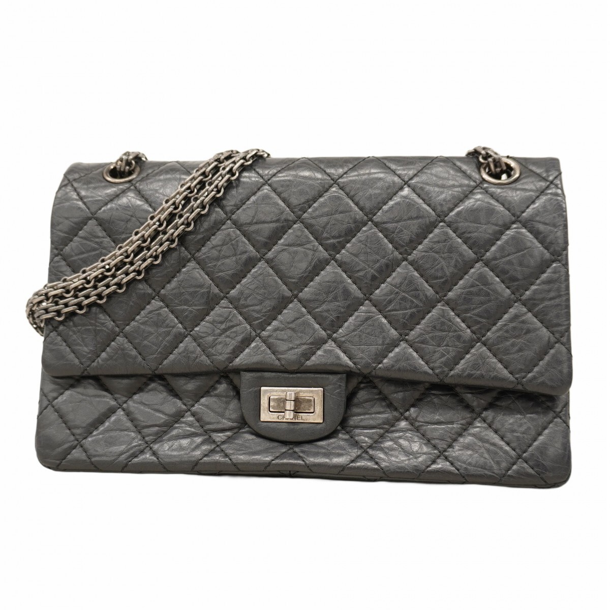 【5pa0309-h】シャネル ショルダーバッグ 2.55/マトラッセ Wフラップ Wチェーン ラムスキン ブラック シルバー金具【中古】レディース