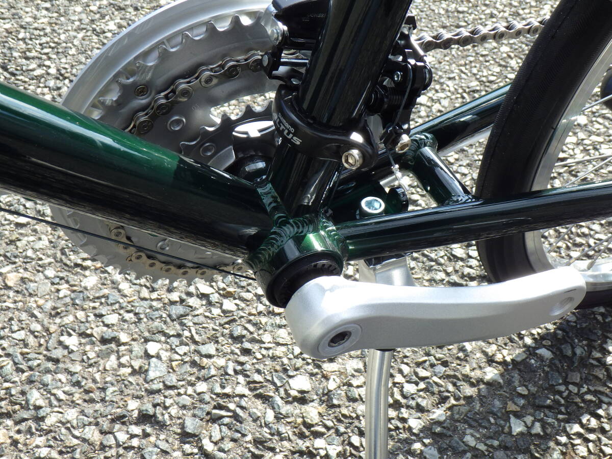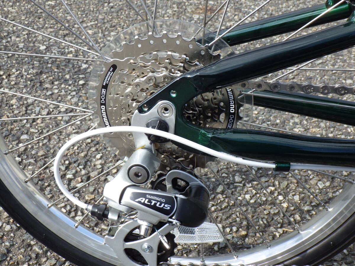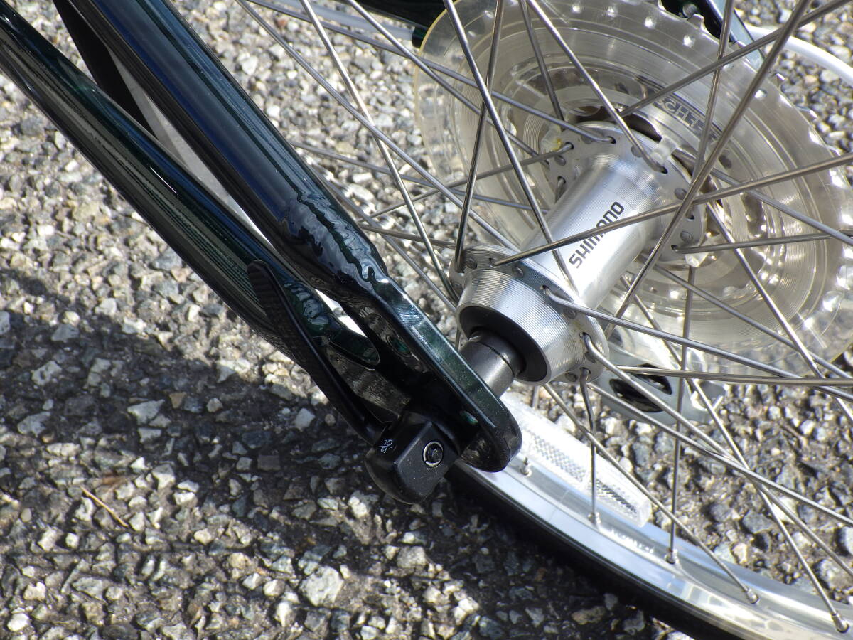 メインコンポーネントをはじめ、ハブやレバー、ブレーキに至るまでシマノ製品を多用することで、