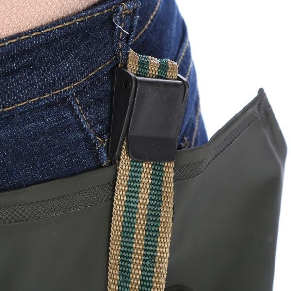 ズボンのベルトに通しブーツに付属の吊り下げベルトを通して固定するだけ♪