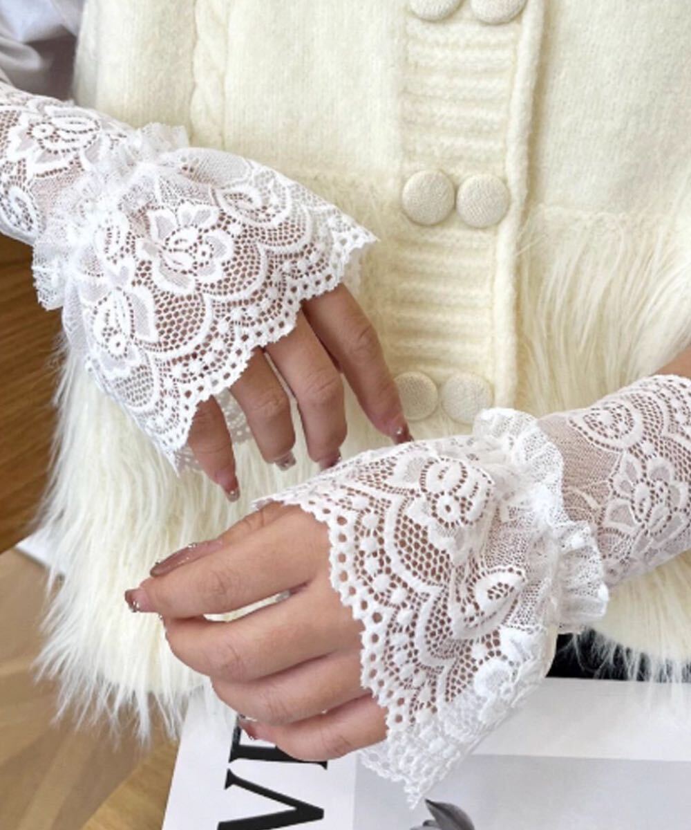 繊細なレースが上品さを演出し、ニットやシャツの袖元に重ねるだけでコーデが格上げ。