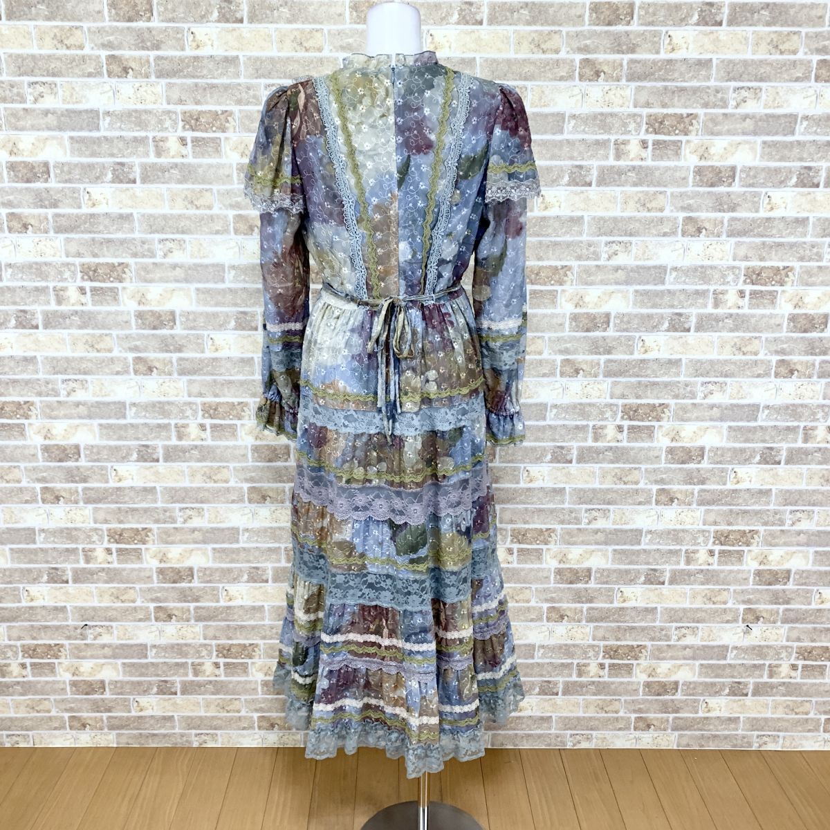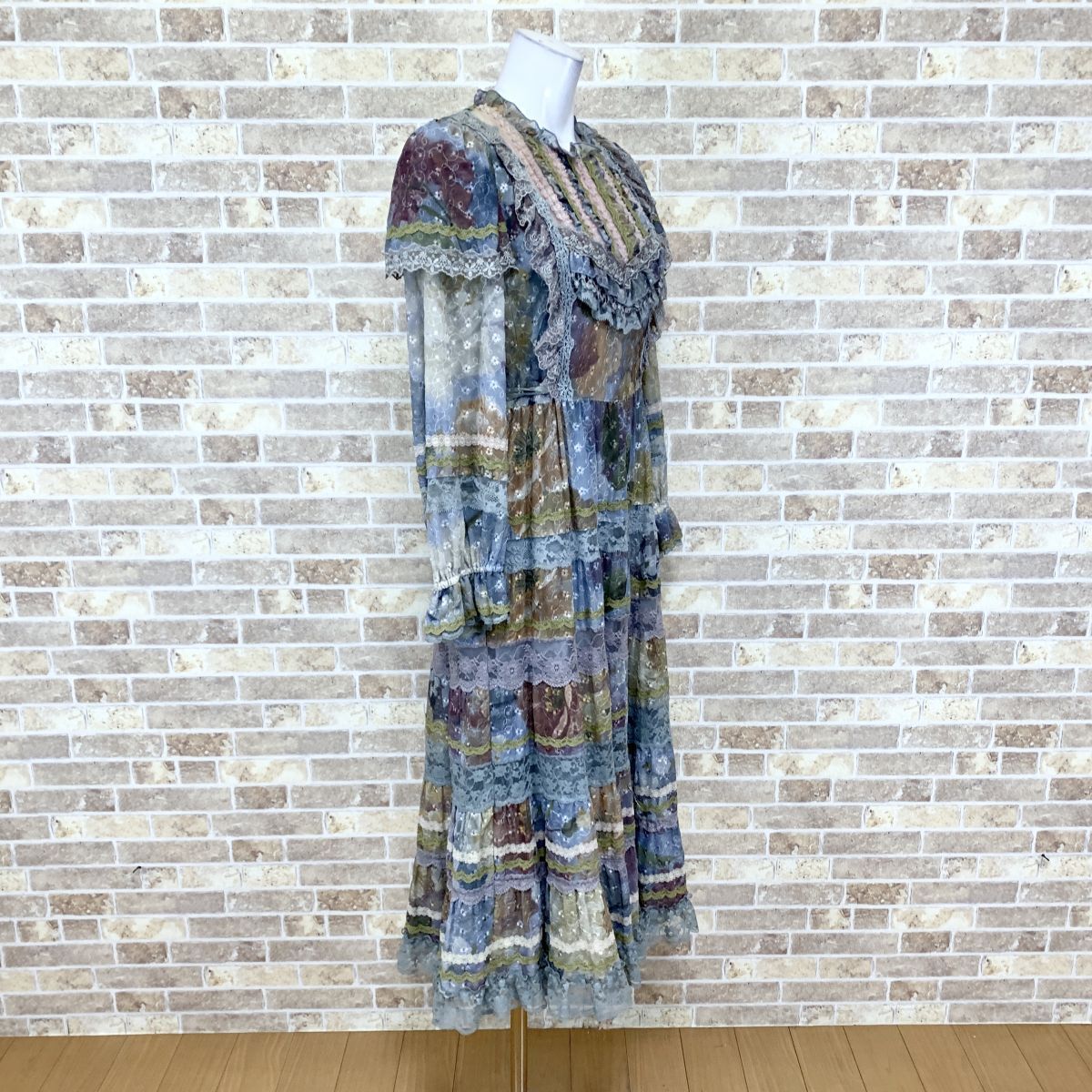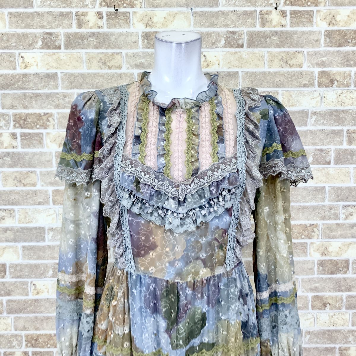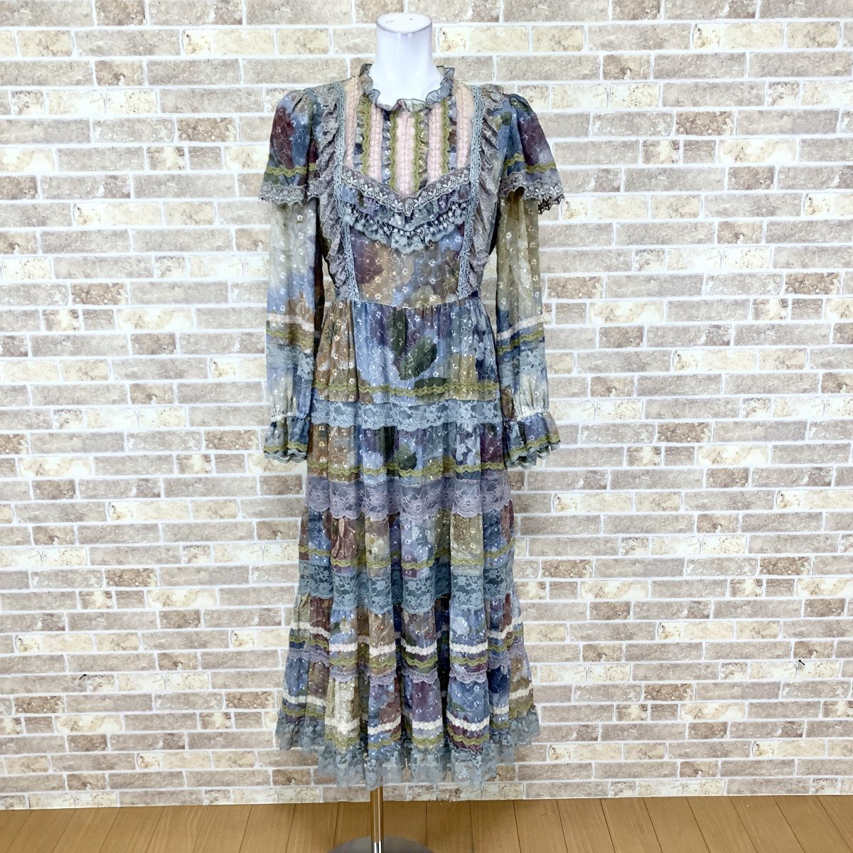 1円 non non dorl ノンノンドール ムッシュ榊 長袖ロングドレス 多色柄 肩パット ロリータファッション 中古17126