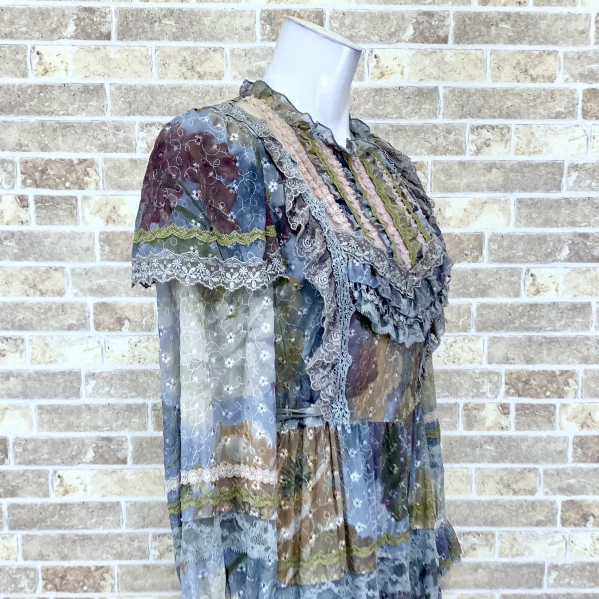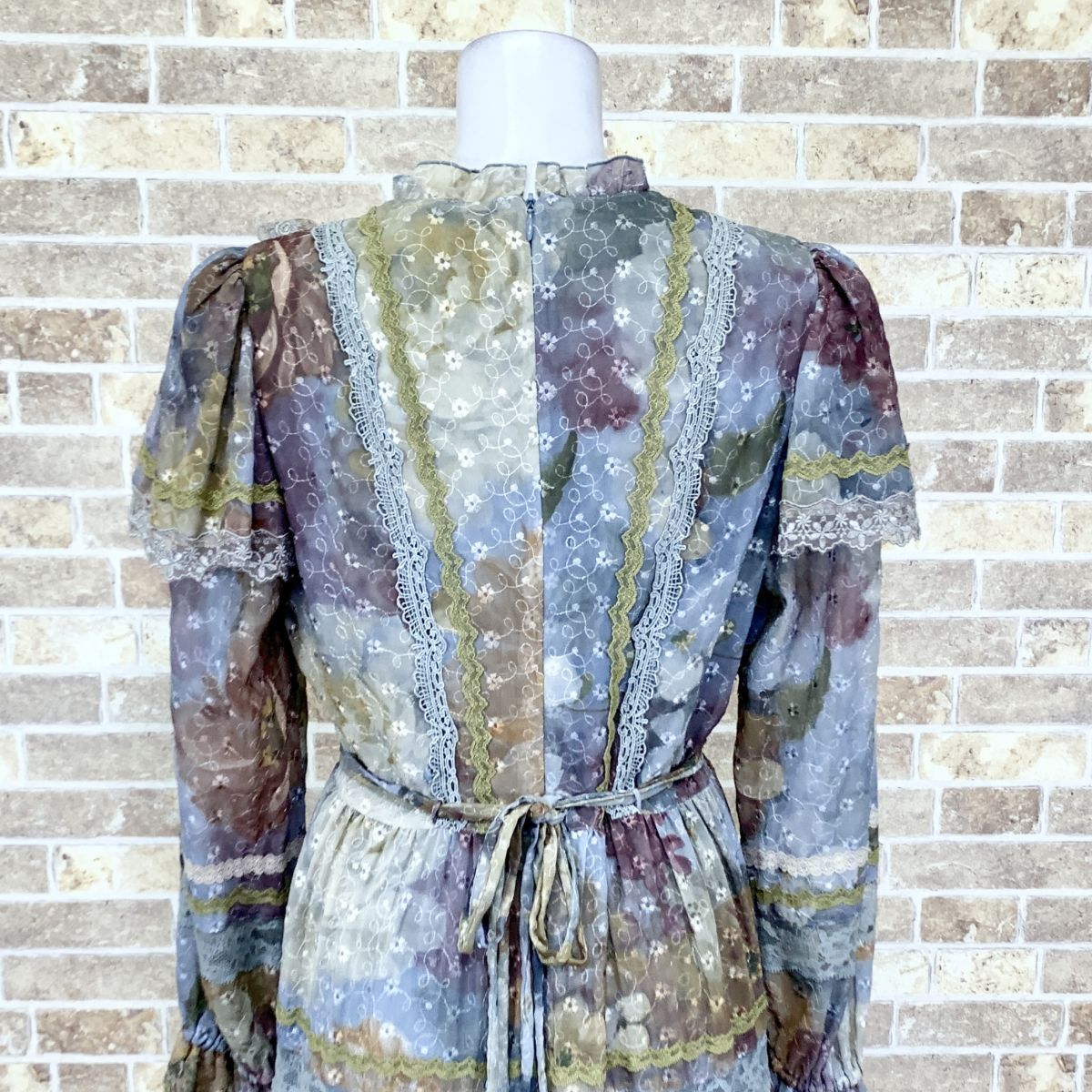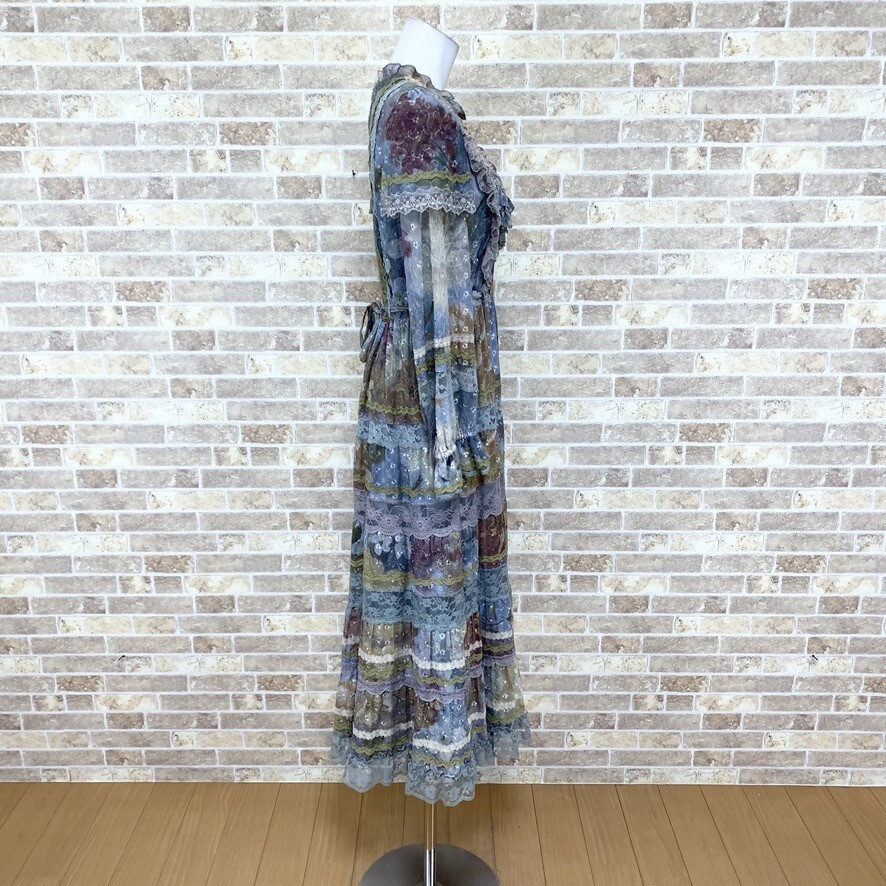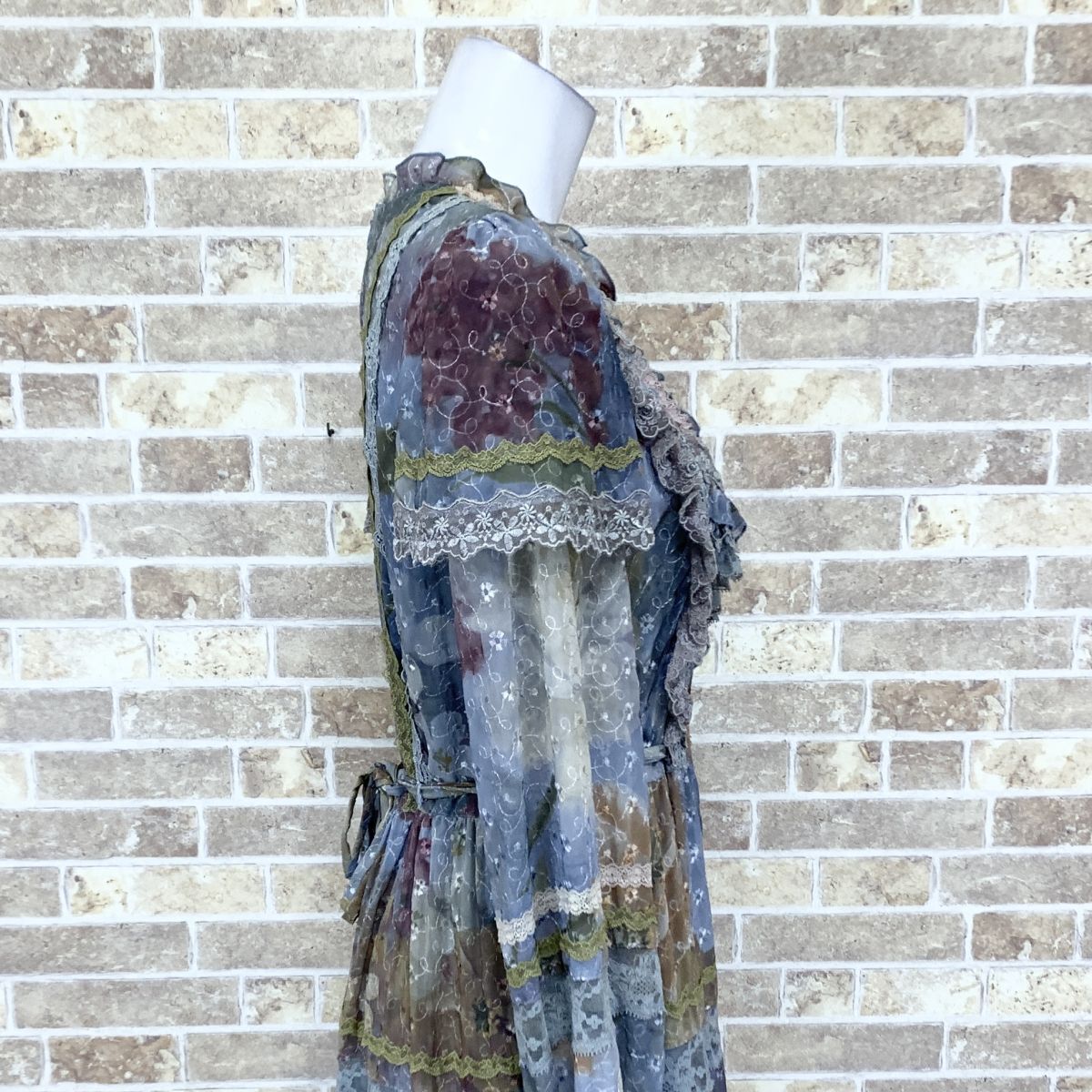1円 non non dorl ノンノンドール ムッシュ榊 長袖ロングドレス 多色柄 肩パット ロリータファッション 中古17126
