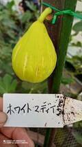 | ホワイトマデイラは、ポルトガルのマデイラ諸島が原産地である。美しい黄色と緑色の皮が特徴。大きな黄緑色のイチジクは、主に3裂した葉を持つ木に生える。ホワイトマデリアの果実は首が長く、 |
