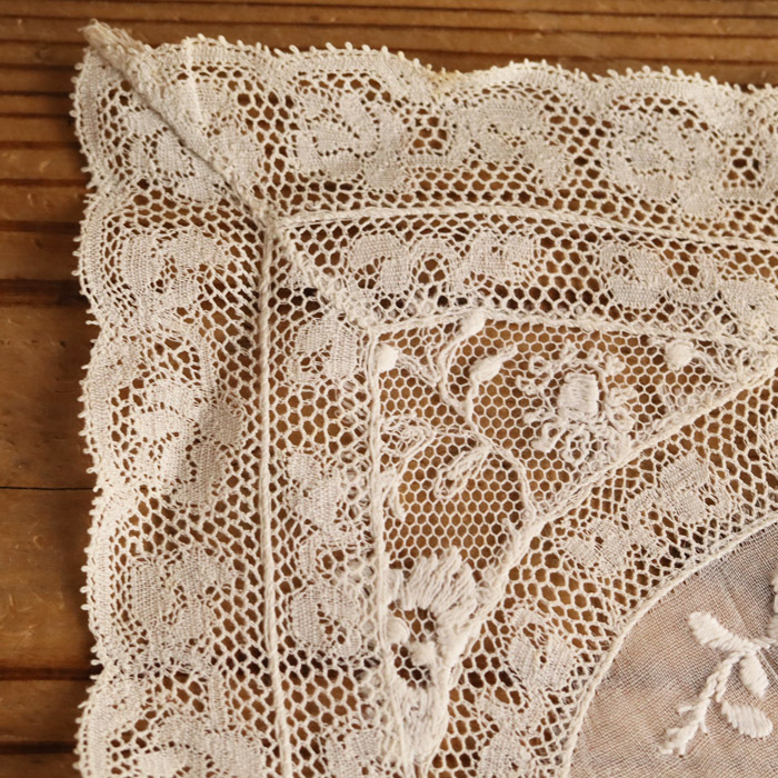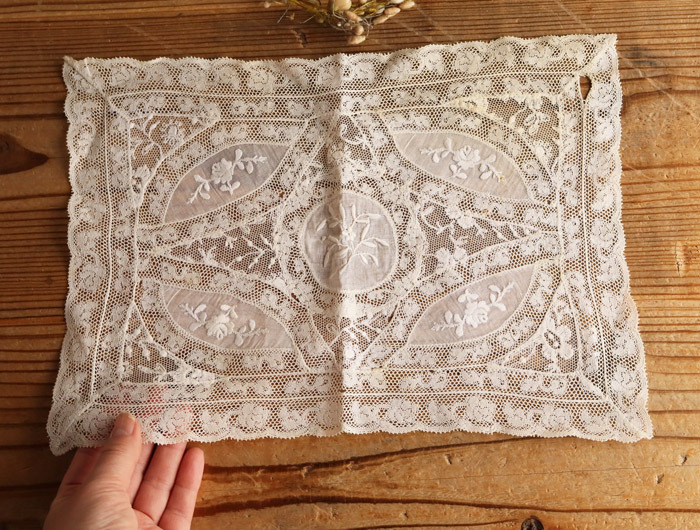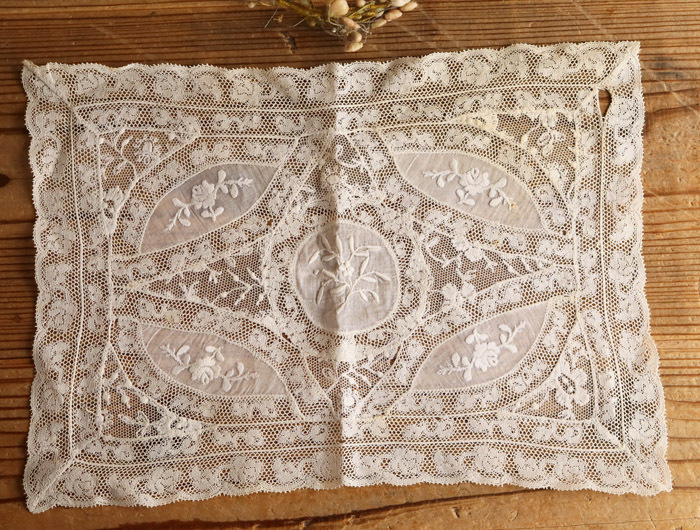 【8】可愛い ノルマンディーレース ドイリー フランス アンティーク 1900~1920年代 レース 手刺繍 23×33cm ヴァレンシエンヌレース
