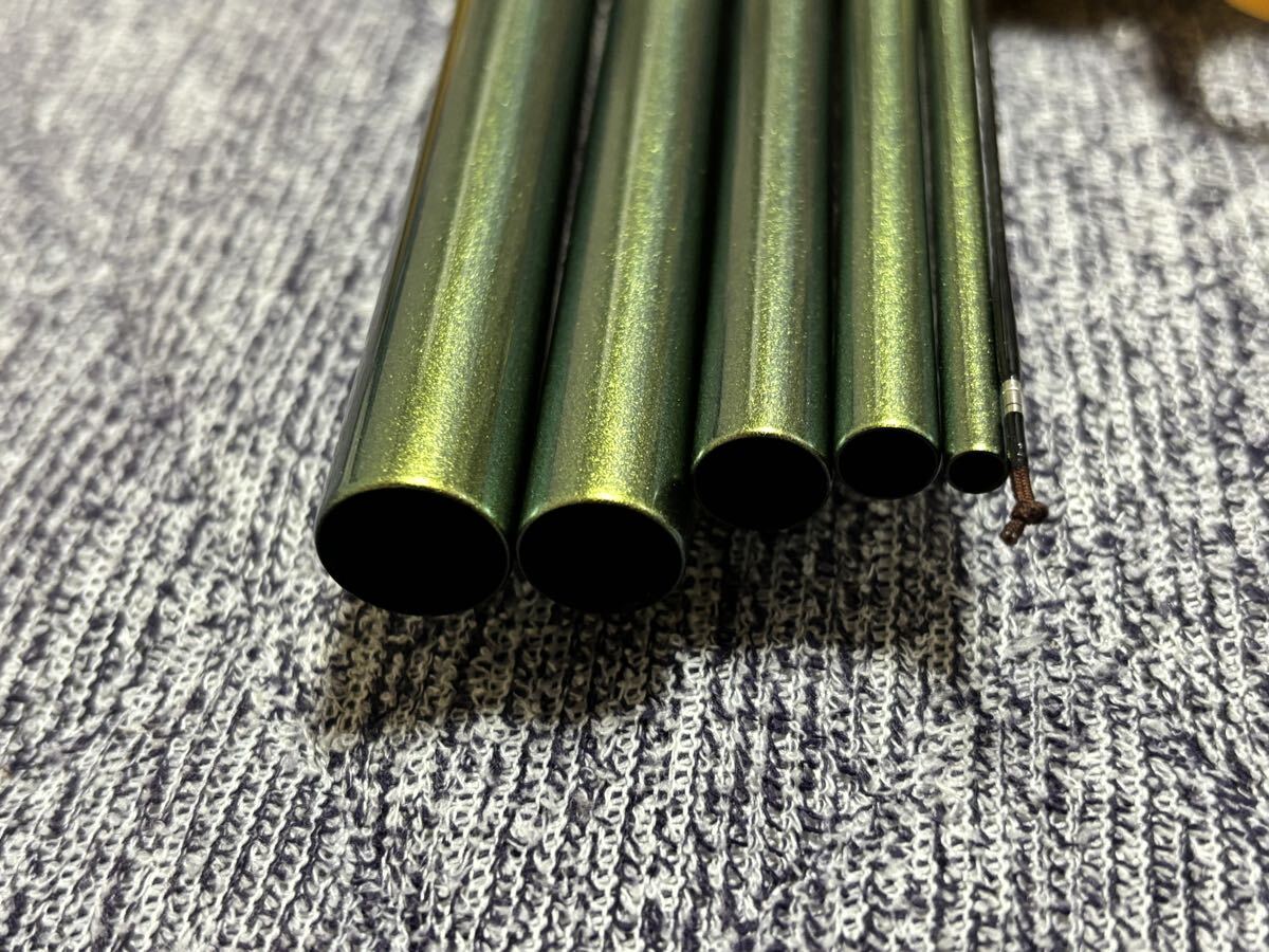 にぎりはエサ汚れや使用感も少なく、綺麗な状態です。表面キズが少しある程度で、塗装の日焼けも少なく綺麗な状態です。繋ぎ込みによる擦れ跡と小キズがあります。口割れ・口欠けはありません。