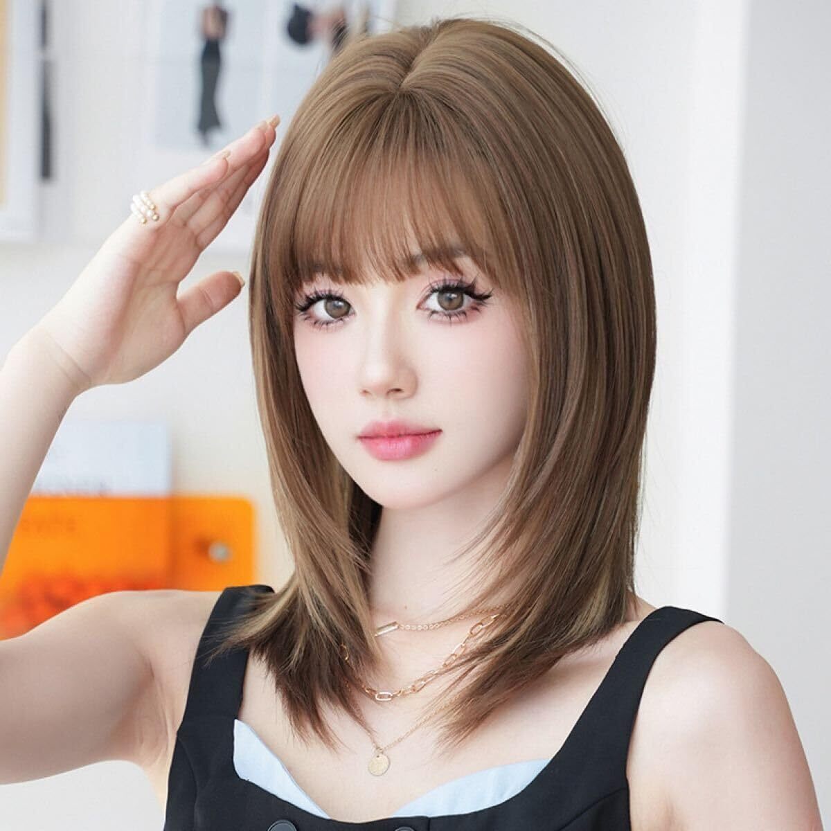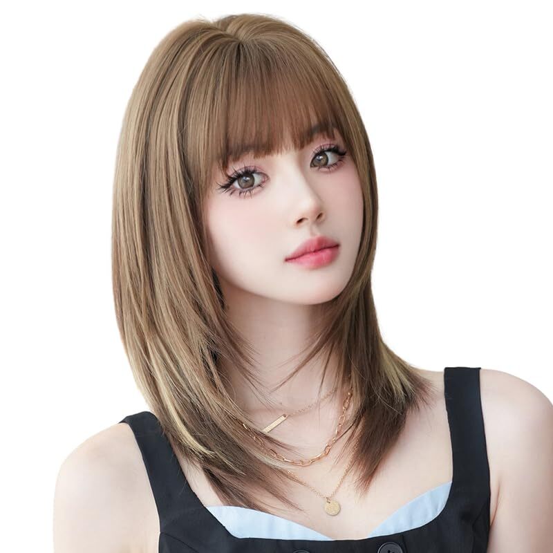 | 商品名 | フルウィッグ レディース セミロング ミディアム ストレートレイヤー ブラウン 上品 小顔効果 韓国 前髪あり シャギー 耐熱 自然 コスプレ |