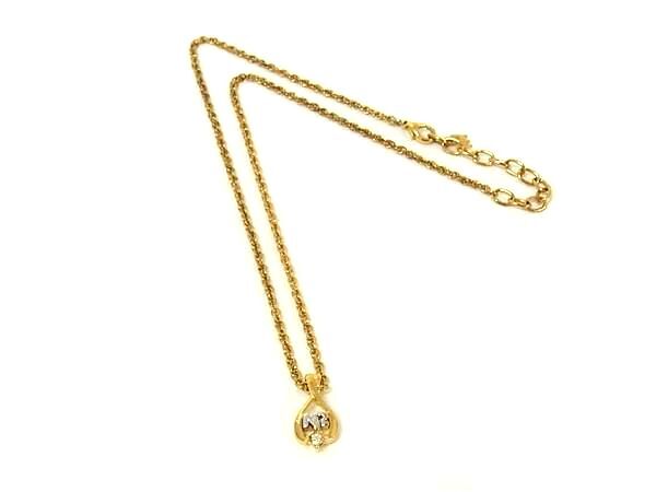 ■極美品■ NINA RICCI ニナリッチ ロゴモチーフ ラインストーン ネックレス ペンダント アクセサリー レディース ゴールド系 DI0105