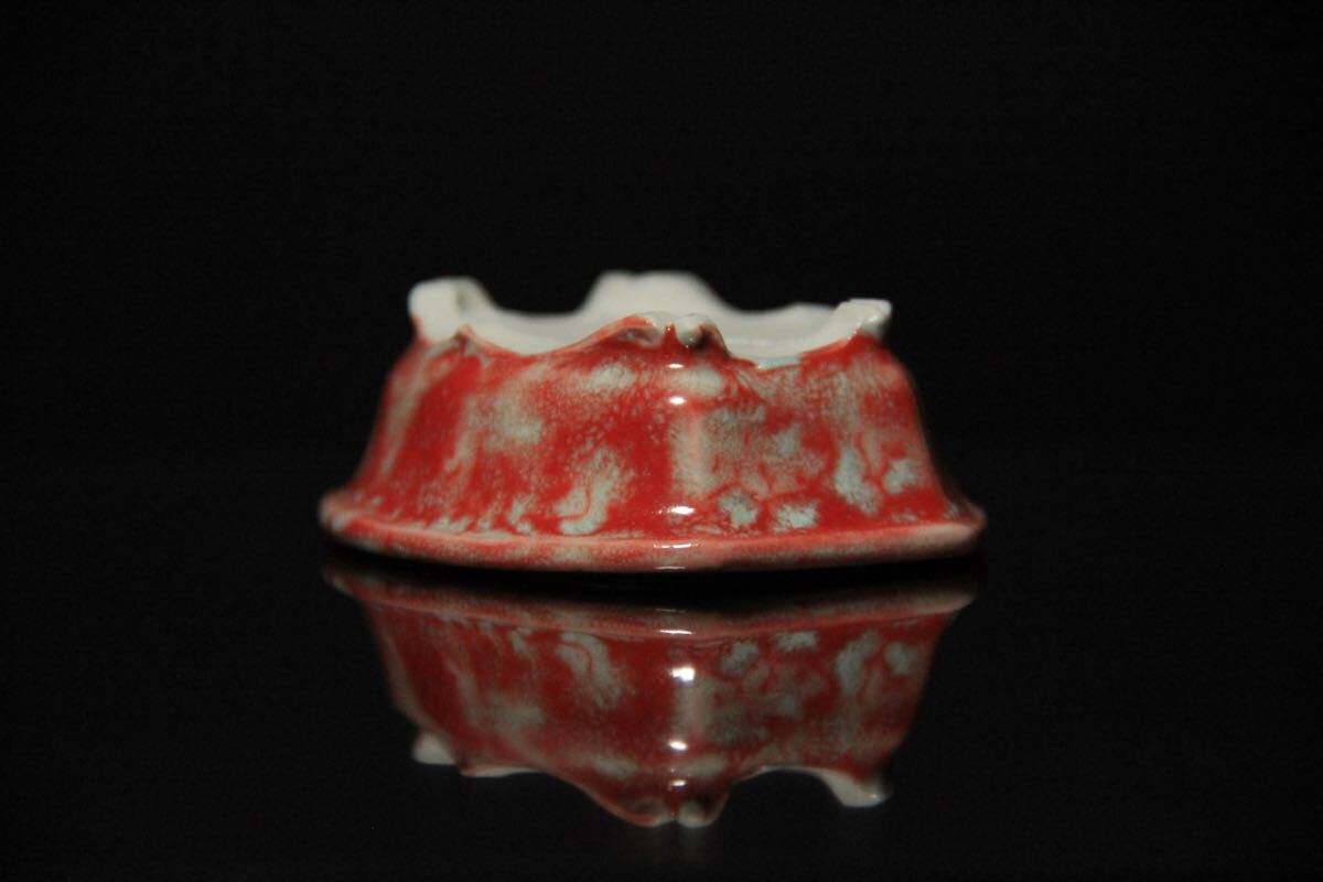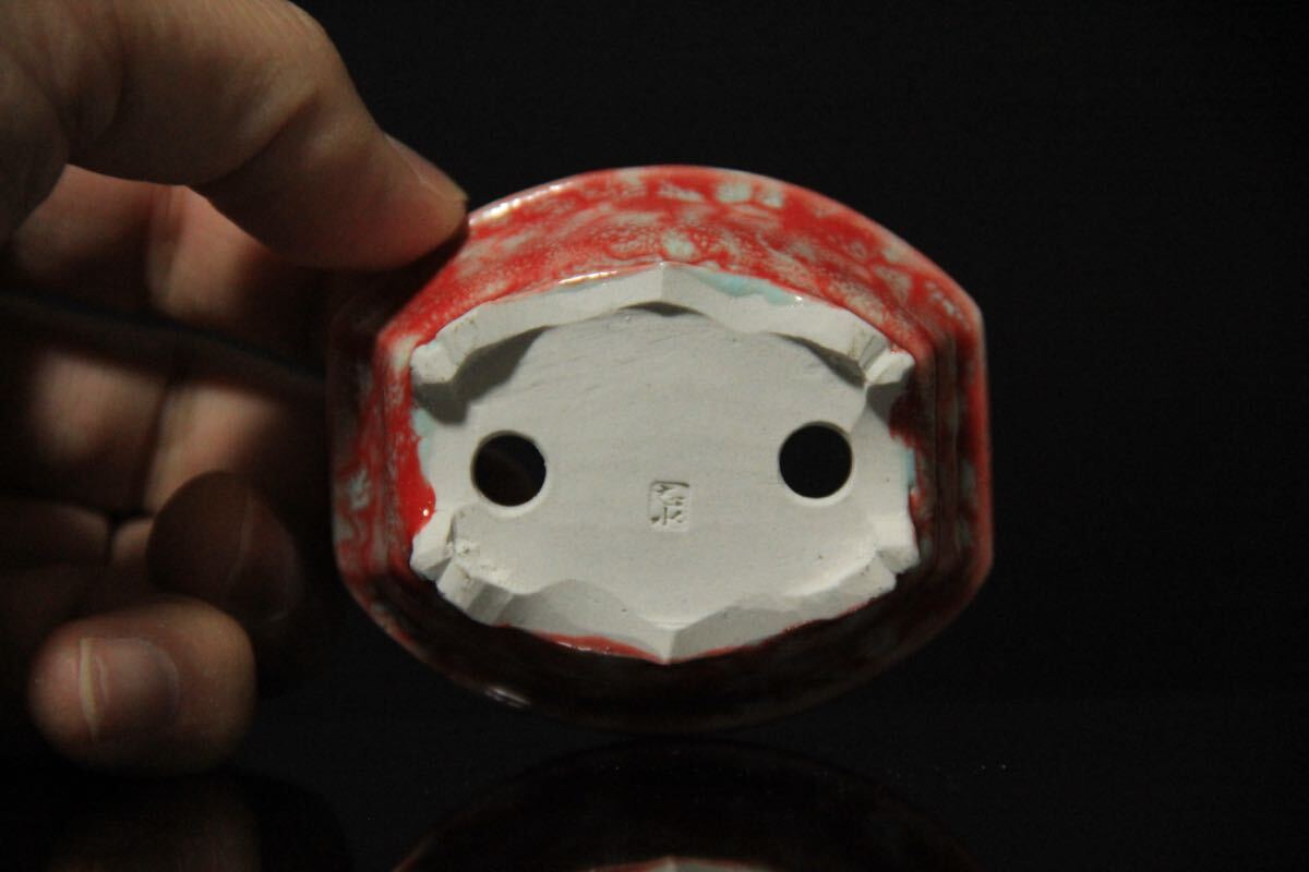 志水鶏血釉合い掛け太鼓胴長方。(商品詳細)約6.5×5.7×2.2㎝。