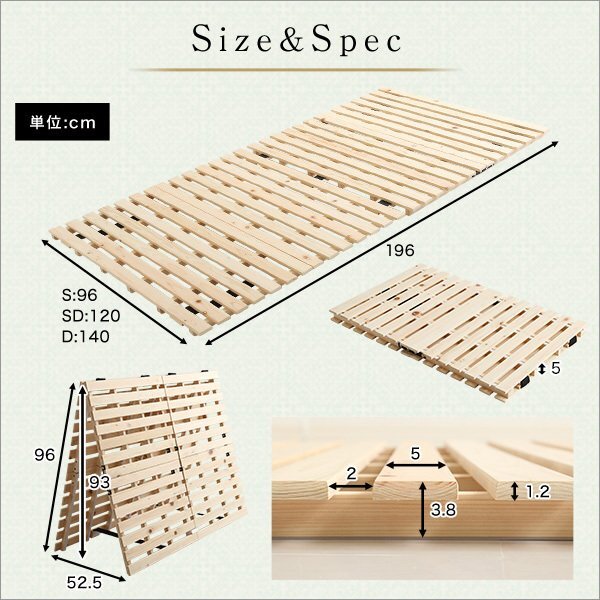 | 今回の出品でお求めいただける商品は すのこベッド二つ折り式 檜仕様【涼風】 セミダブル です。宜しくお願いします。 |