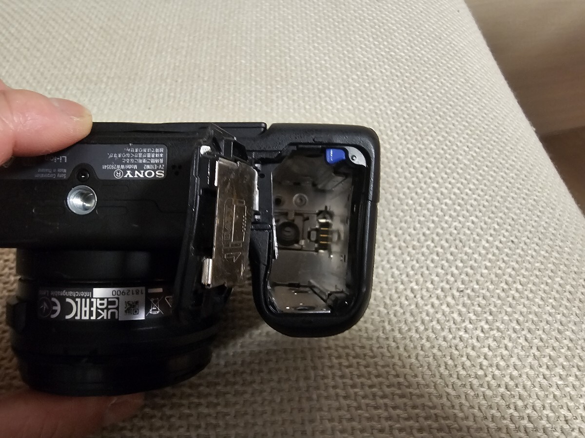 落下に伴い、本体はバッテリー格納箇所が変形し起動できません。