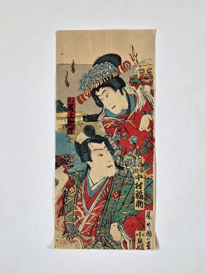 尾竹國一 売薬版画 小泉版 中村福助 役者絵 歌舞伎絵 明治 真作