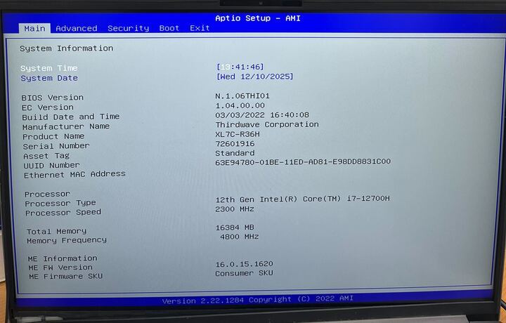 CPU:12th Gen Intel(R) Core(TM) i7-12700H