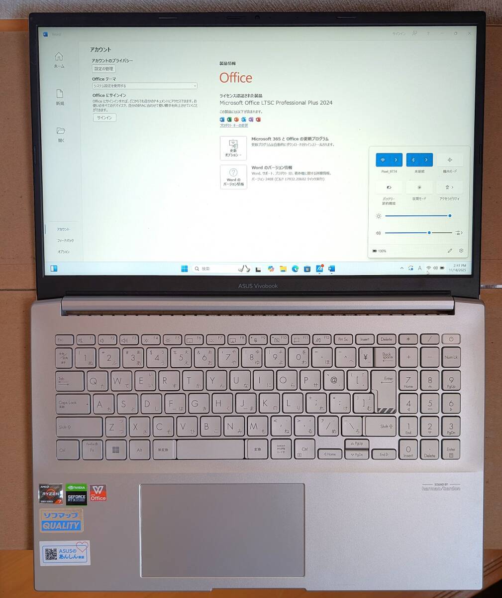 ASUS VivoBook M6500QC AMD Ryzen 7 5800HS/RTX3050/メモリ 16GB/SSD 1TB/15.6型 144Hz フルHD 非光沢/Win11/0ffice 23年1月製