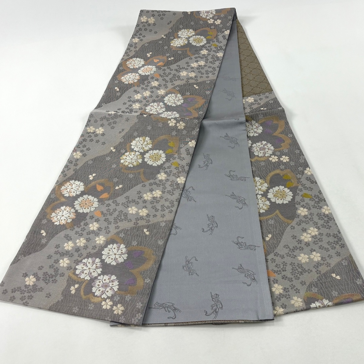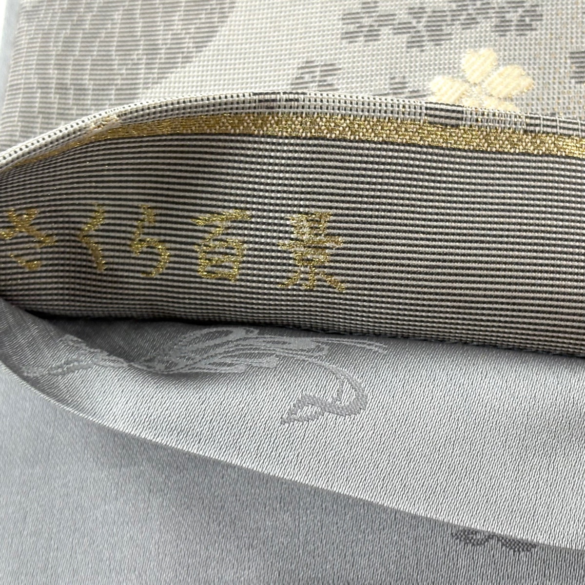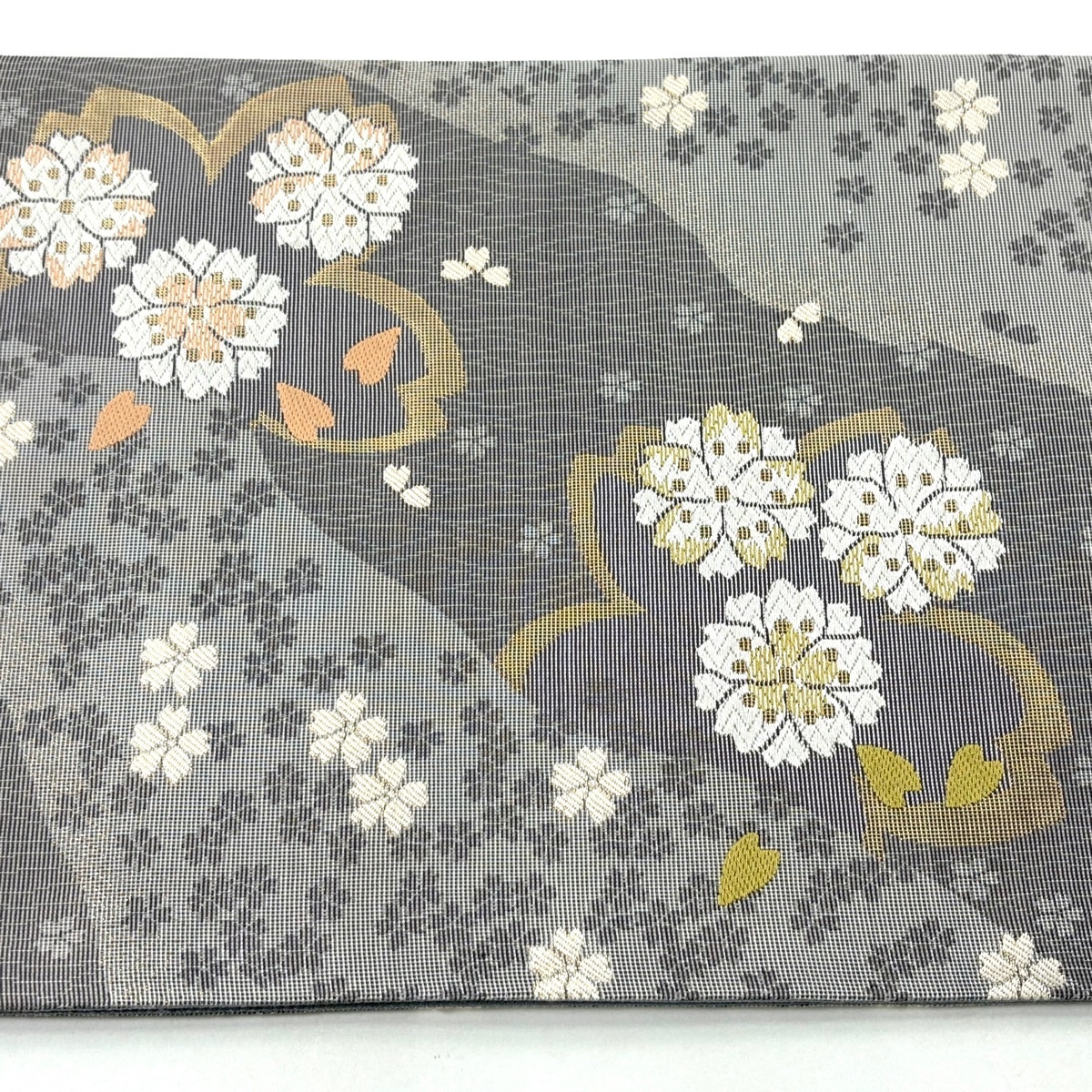 | 袋帯 美品 名品 さくら百景 桜 幾何学 唐織 箔 灰色 六通 正絹 【中古】 |