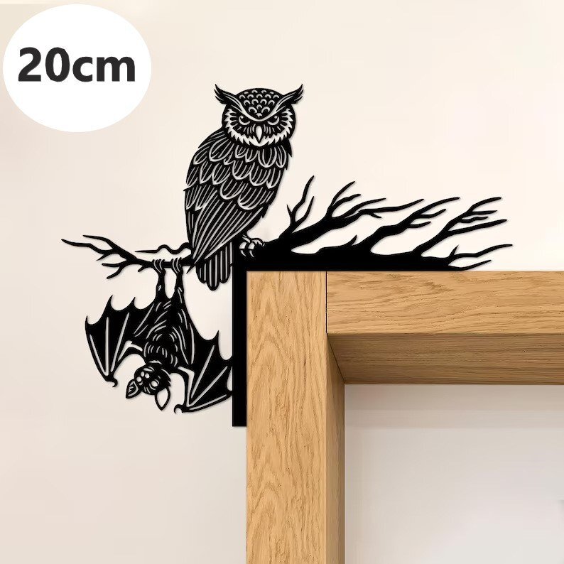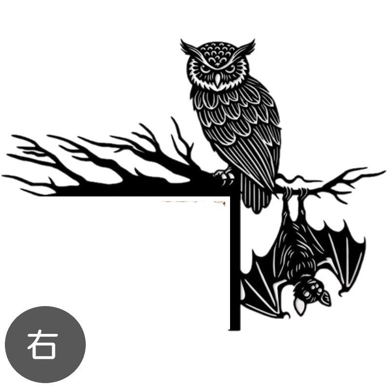 ドア オーナメントフクロウとコウモリ 右 20cm 雑貨 置物 園芸 ガーデン オブジェ 梟 ふくろう ミミズク 蝙蝠 n919