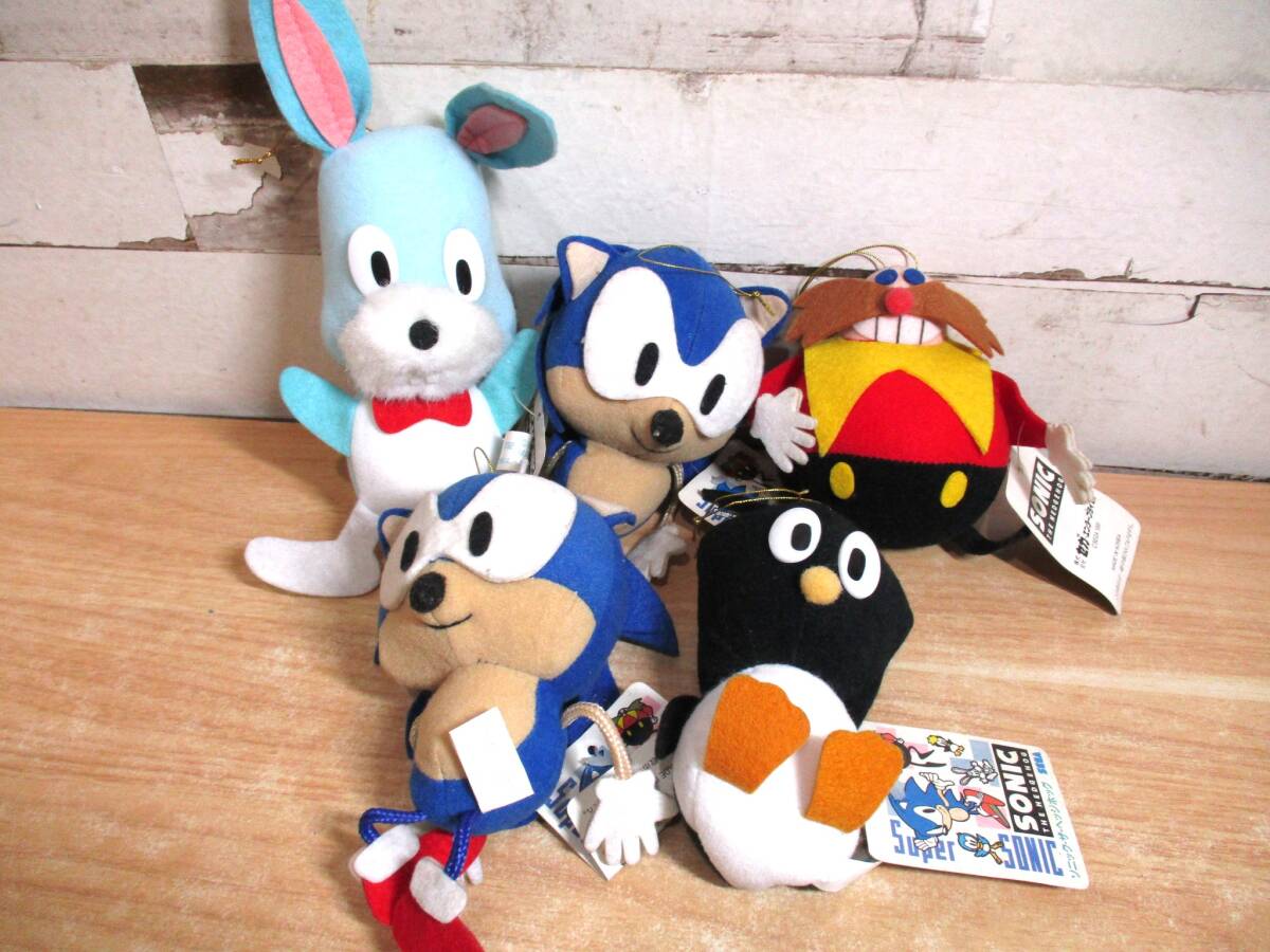 2M2-1「★1円~ ソニック ザ ヘッジホッグ ぬいぐるみ まとめて 5点」Sonic 当時物 SEGA セガ 現状品 タグ付き 経年保管品