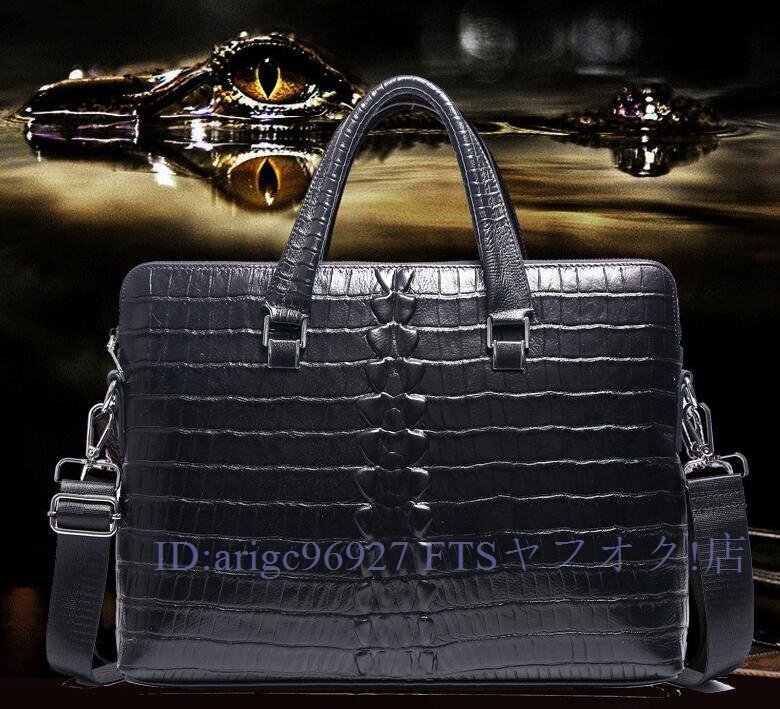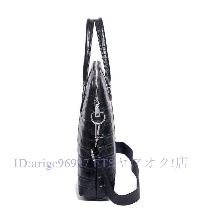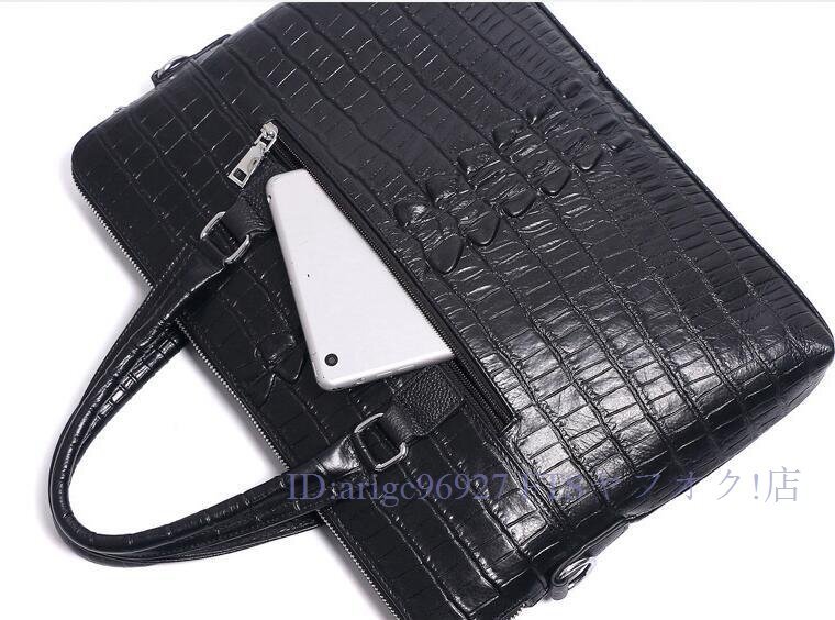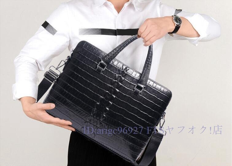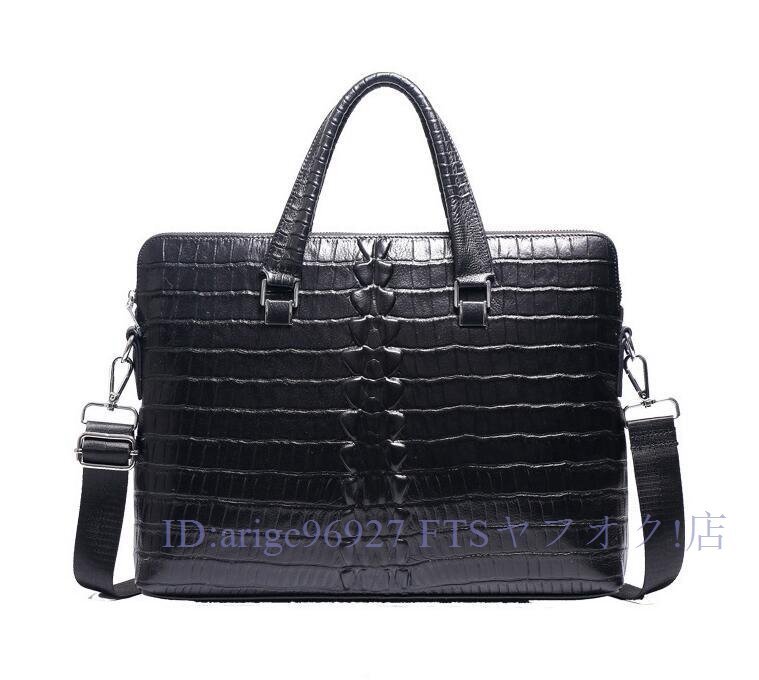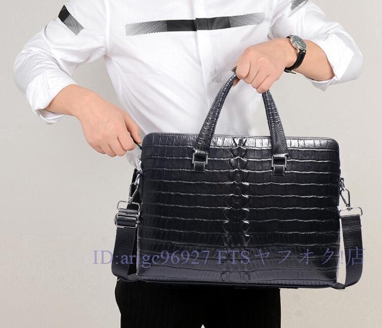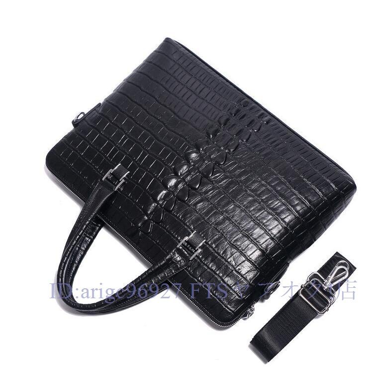牛革 本革 14インチクロコダイル型押し メンズバッグ ビジネスバッグ ノートパソコン ブリーフケース A4 レザー 通勤鞄 手提げバッグ黒