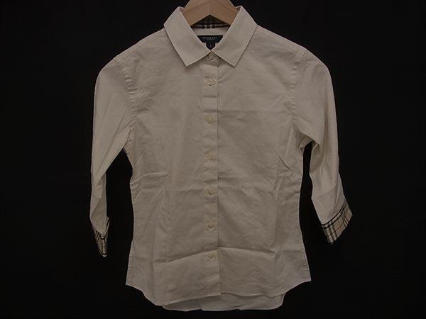 BURBERRY バーバリー コットン×ナイロン チェック柄 七分袖 Yシャツ トップス 表記サイズS 洋服 レディース アイボリー系 DH4919