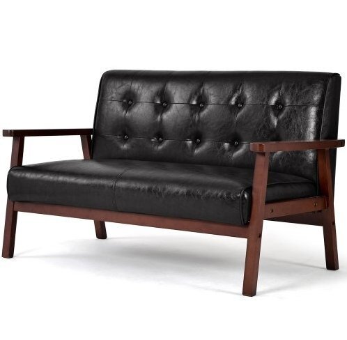 【国内発送】セレブ好物!2人掛けソファー 2P レザー PVC 肘付き 天然木脚 簡単組み立て おしゃれ 新生活 北欧スタイル ソファベッド