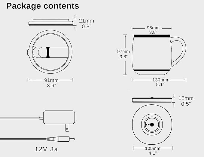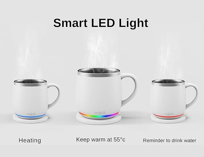 | 240. min Ya 温度調節スマートマグ、400ml(13.5オンス)、3モードRGB LEDディスプレイ、自動加熱コーヒーマグ、オフィス/家庭の卓上向け、ホワイト | ||||