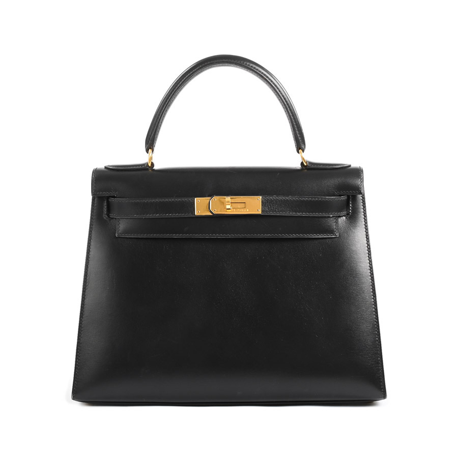 エルメス ケリー28 ハンドバッグ ブラック レディース Y○ 1995年 中古AB品