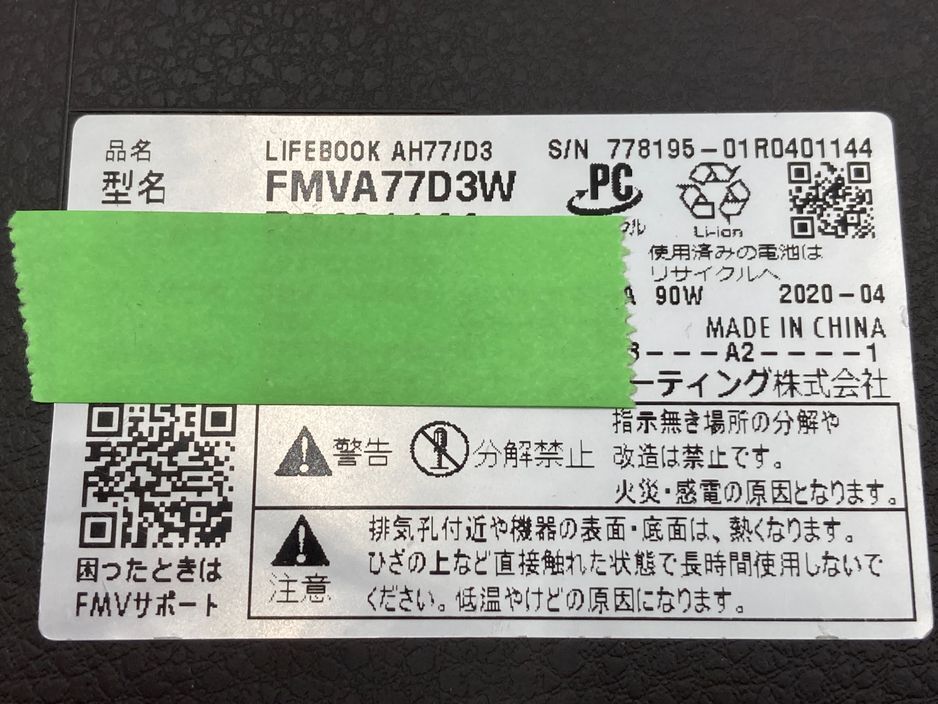 【製品名(型番)】 FMVA77D3W