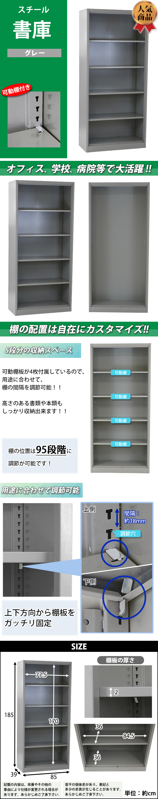 | 商品名 | 送料無料 ロッカー おしゃれ スチール書庫 グレー 5段 スチール製 スチールキャビネット オープン書庫 書棚 本棚 スチールラック キャビネット スチール棚 収納 オフィス 事務所 会社 業務用 スリム 更衣ロッカー オフィス用品 灰 10035open |