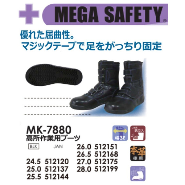 MK7880 BLK ブラック 高所作業用ブーツ優れた屈曲l性。マジックテープで足をがっちり固定。■つま先 鉄芯入■本革使用■耐油■幅広3E