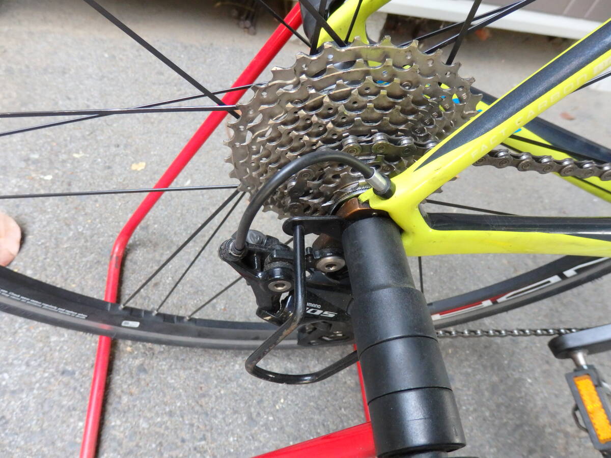 当方、ヒルクライムが多いのでスプロケットとリアディレイラーをプロショップで11-34タイプとロングゲージタイプに換装してもらってあります。その折、アルテグラのリアディレイラーがプロユースのルートでは在庫がなかったため105で代替した経緯があるため、リアディレイラーのみ105です。