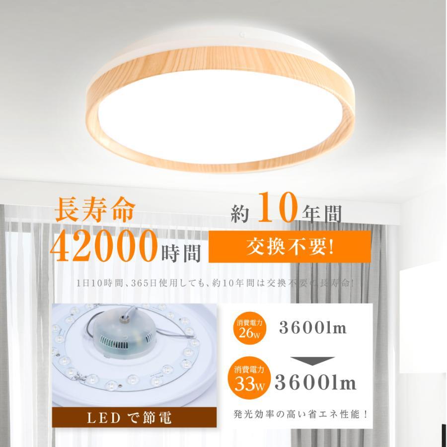 【製品仕様】商品サイズ:Φ34xH6.5cm、カラー:ナチュラル、調光:15段階、消費電力:33W