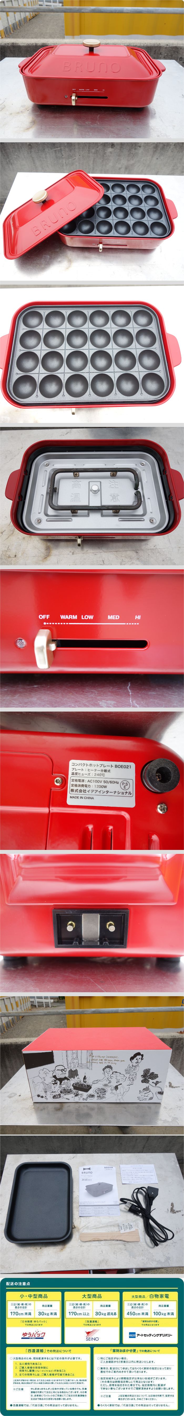 【美品】M▽イデアインターナショナル コンパクトホットプレート BRUNO ブルーノ 卓上 たこ焼き器 レッド BOE021 (27833)