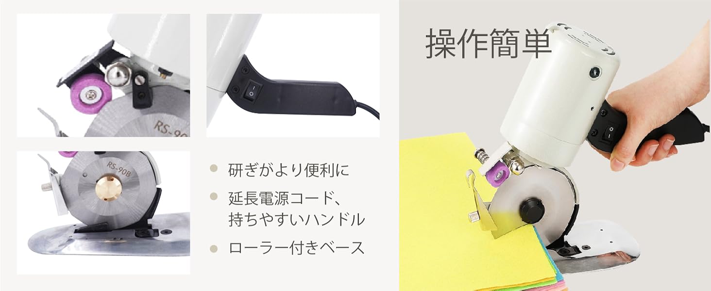 【高速切断】当社の電動布裁断機は直径90mm刃を搭載し、2400rpmで最大25mmの厚さまで切断します。 裁断は速く、きれいで、乱れることなくスムーズです。