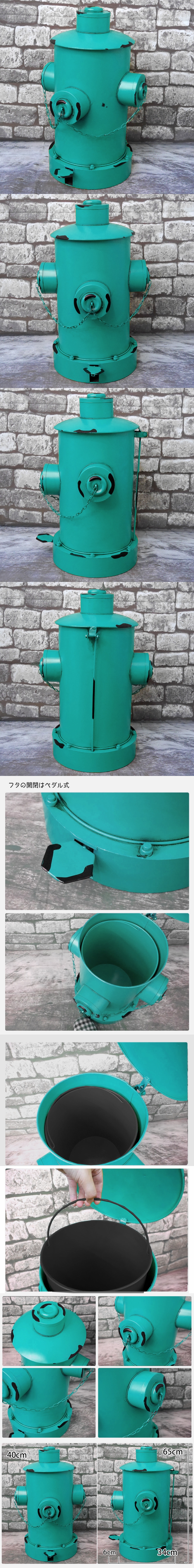 レトロな消火栓の形をしたブリキ製のゴミ箱です。 所々にサビ風ペイントを施し、レトロな雰囲気に仕上げました。 取っ手付きビニール袋をセットする際、両サイドの出っ張り引っ掛けられて便利。 フタの開閉はペダル式です。 店内や店外へ向けて飾るととってもオシャレ! 存在感抜群でお店に飾ってもインパクトの有るデザインとなっています シャビーなデザインがオシャレなアンティーク調がオシャレ感UP お部屋を華やかに飾ってみては如何でしょうか? サイズ 高さ:65cm 横:40cm 奥行き:34cm 容量 内バケツ使用時 11L、未使用時 15L ※海外からの輸入品になります。 その為商品に擦れキズ、凹み、歪みがある商品もある場合が御座います 予めご了承ください。 ※画像と実物のカラーにつきましては撮影時の光加減やお客様のパソコン環境によって、 実際のイメージと若干異なる場合も ありますので御了承ください。 |