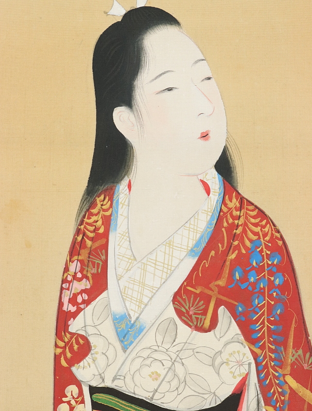 9590■【真作】小早川清 美人図 絹本 肉筆 鏑木清方に師事 福岡の人 掛軸