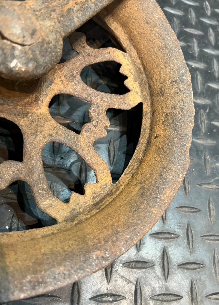こちらは  昭和レトロ アンティーク コレクション 鉄製滑車 井戸 鉄製 滑車 古民家 古道具 古民具 時代物 となります。
