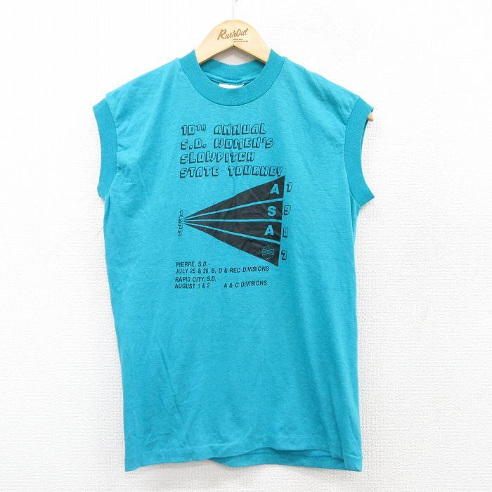 【商品名】 M★古着 ノースリーブ ビンテージ Tシャツ メンズ 80年代 80s ASA クルーネック USA製 水色