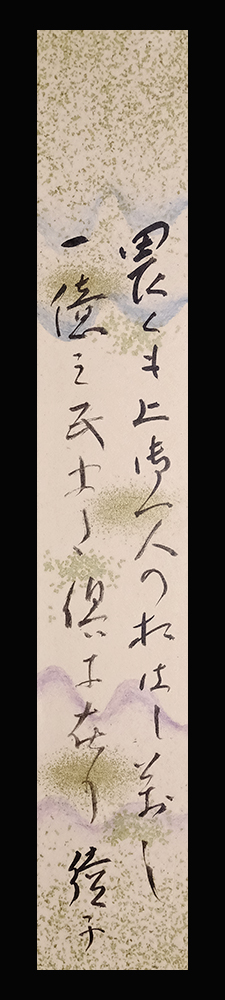 紙本(金砂子散内曇入料紙)肉筆未装短冊1点 作品寸法:36.4cm x 6.0cm 商品状態:良好。実際の品を画像にてお確かめ下さい。 ★本品は印刷ではなく肉筆保証の作品です。 ★本品は真作保証の作品です。 出品作品の読みにつきましては、ご落札頂いた後のご依頼についてのみ、出来るだけ対応させて頂きます。 中原綾子(なかはら-あやこ) 1898-1969。大正-昭和時代の歌人。 明治31年2月17日生まれ。与謝野晶子(よさの-あきこ)に師事し,第2期「明星」で活躍。昭和4年吉井勇の「相聞」(のちの「スバル」)にくわわり,6年「いづかし」を創刊。戦後「すばる」を復刊,主宰した。昭和44年8月24日死去。71歳。長崎県出身。東洋高女卒。旧姓は曾我。歌集に「真珠貝」「深淵」「刈株」など。 出典:講談社『デジタル版 日本人名大辞典+Plus』 |