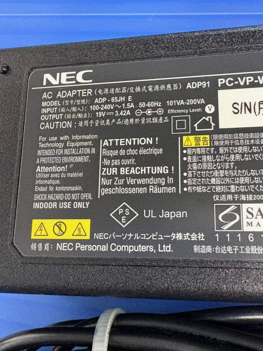 NEC 純正 ACアダプタ ADP-65JH E(ADP91) PC-VP-WP123 外径5.5 内径2.6 (5