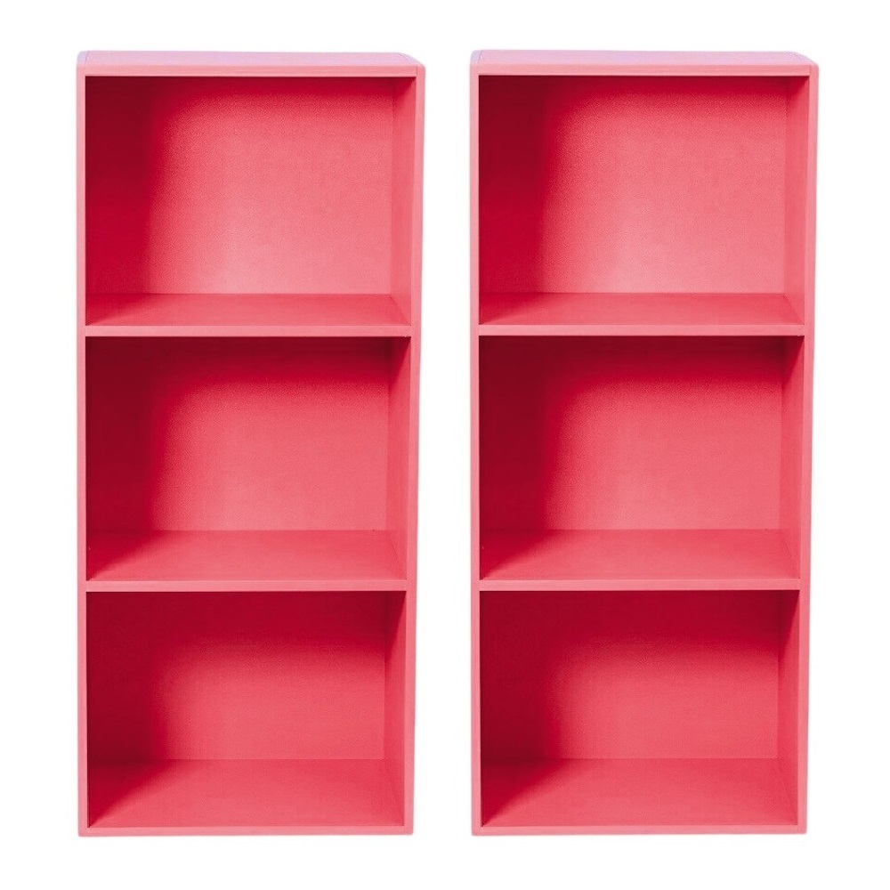 【新品】カラーボックス3段  2個セット(コーラルレッド)3段ボックス