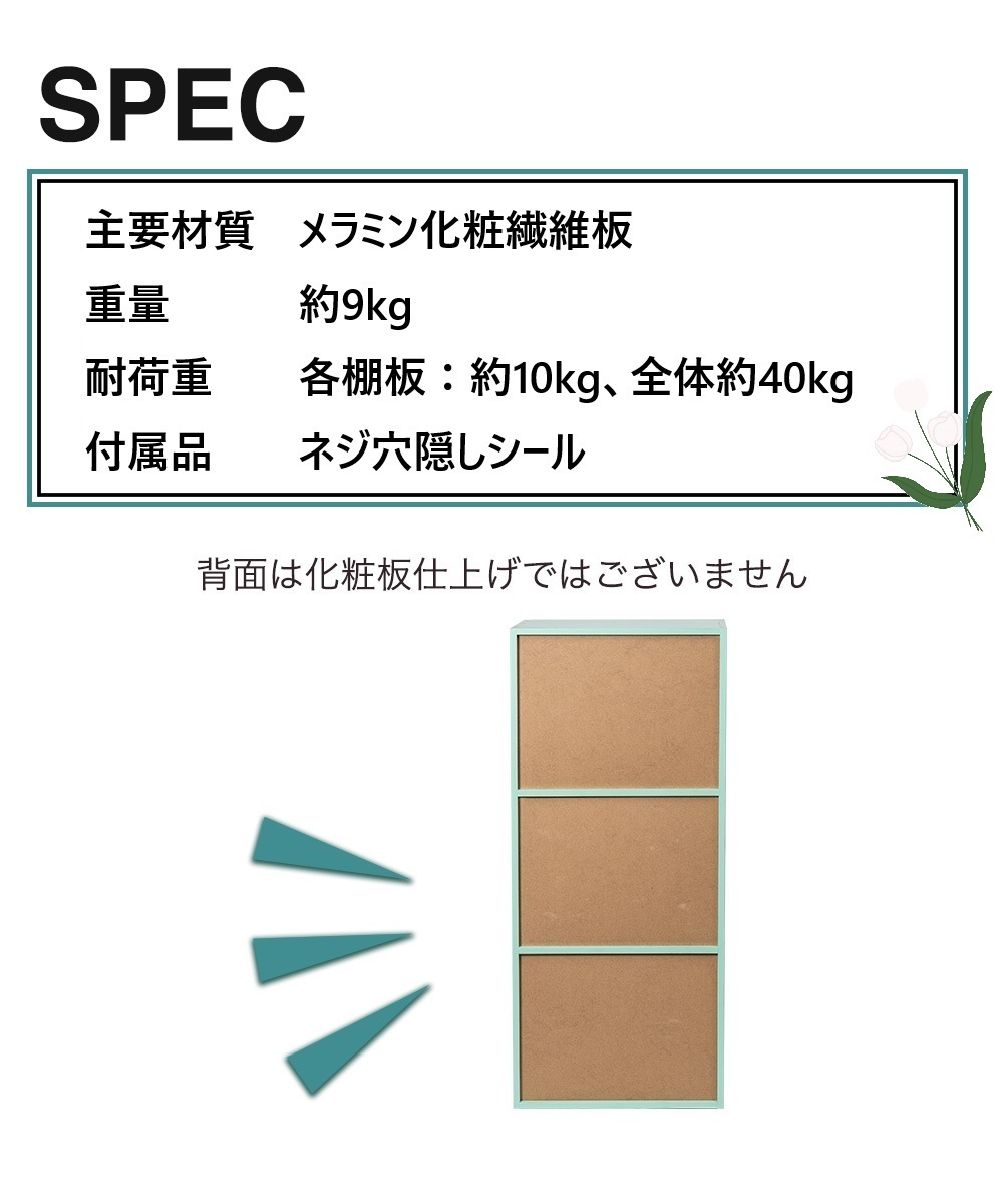 ■耐荷重:棚板1枚あたり約10kg、天板約10kg、全体約40kg