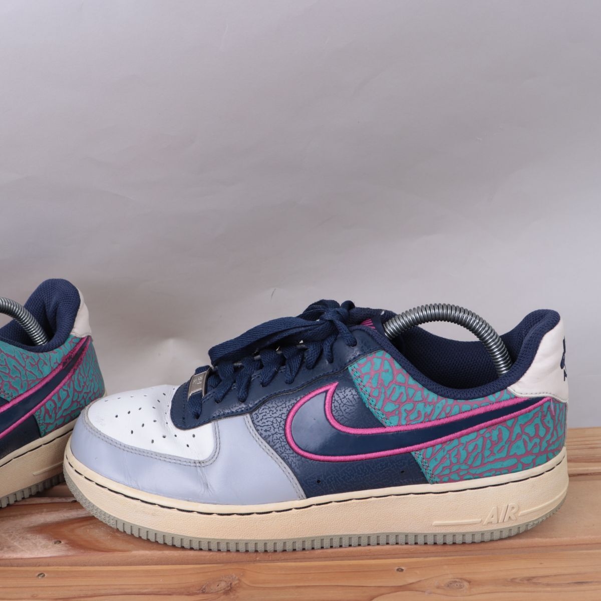 z1332 ナイキ エアフォース1 US8.5 26.5cm/紺 ネイビー グレー 白 柄 NIKE AIRFORCE1 メンズ スニーカー 中古