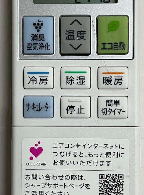 シャープ エアコン用 リモコン B196JB 動作品 美品