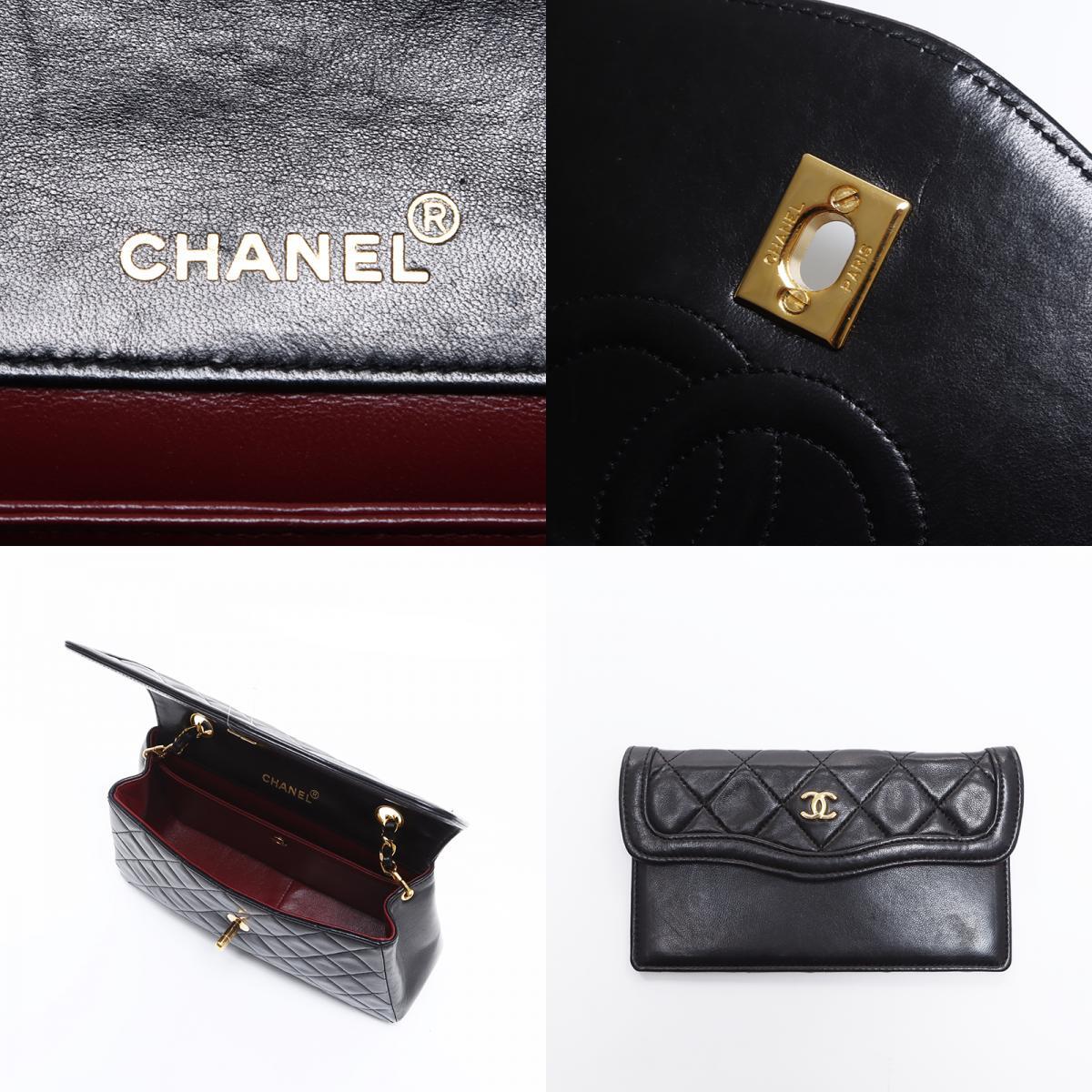 極美品 CHANEL 1番台ココマーク ラムスキン マトラッセ チェーン ショルダーバッグ ブラック