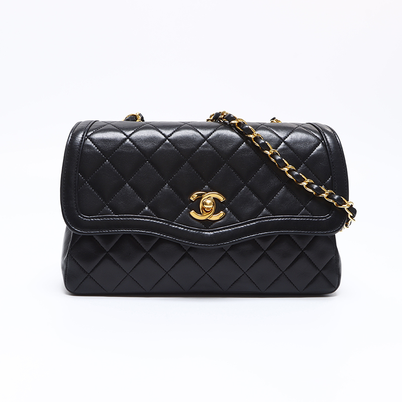 シャネル CHANEL ショルダーバッグ 1番台ココマーク ラムスキン マトラッセ チェーン ブラック
