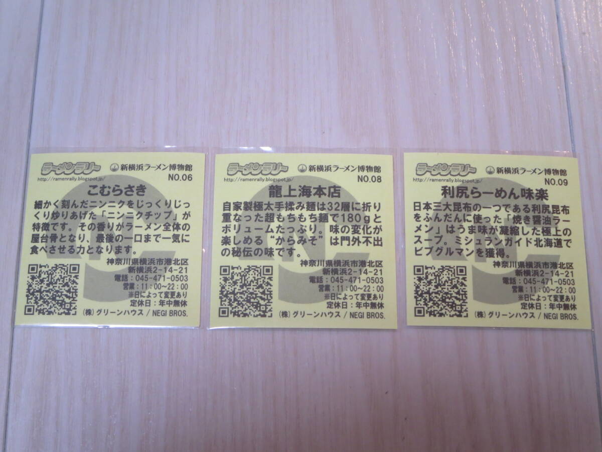 ロ ラーメンラリー(新横浜ラーメン博物館)シール3枚セット NO.06こむらさき/08龍上海本店/09利尻らーめん味楽 グリーンハウス/NEGI BROS.