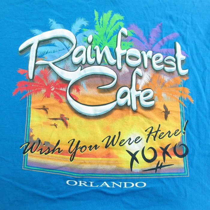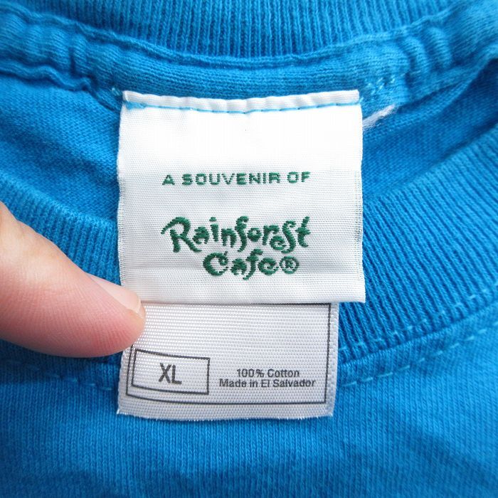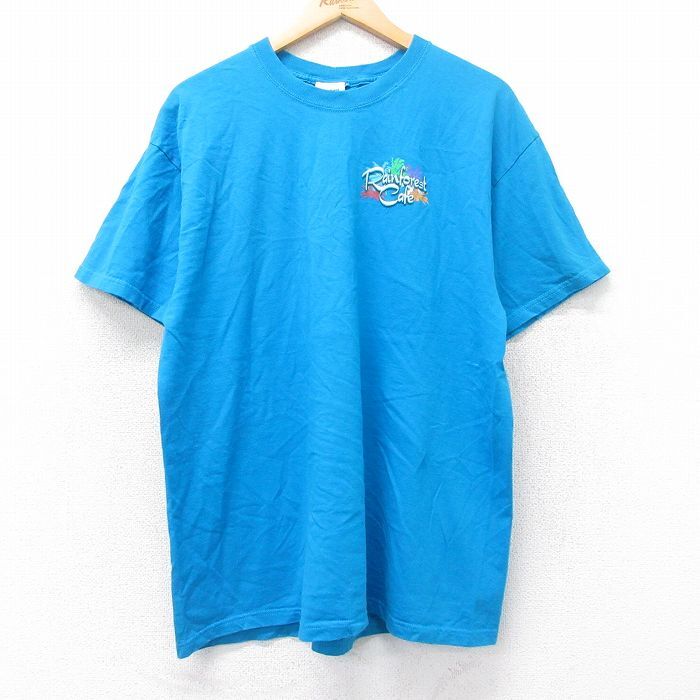 【商品名】 XL★古着 半袖 ビンテージ Tシャツ メンズ 00年代 00s Rainforest Cafe コットン クルーネック 水色