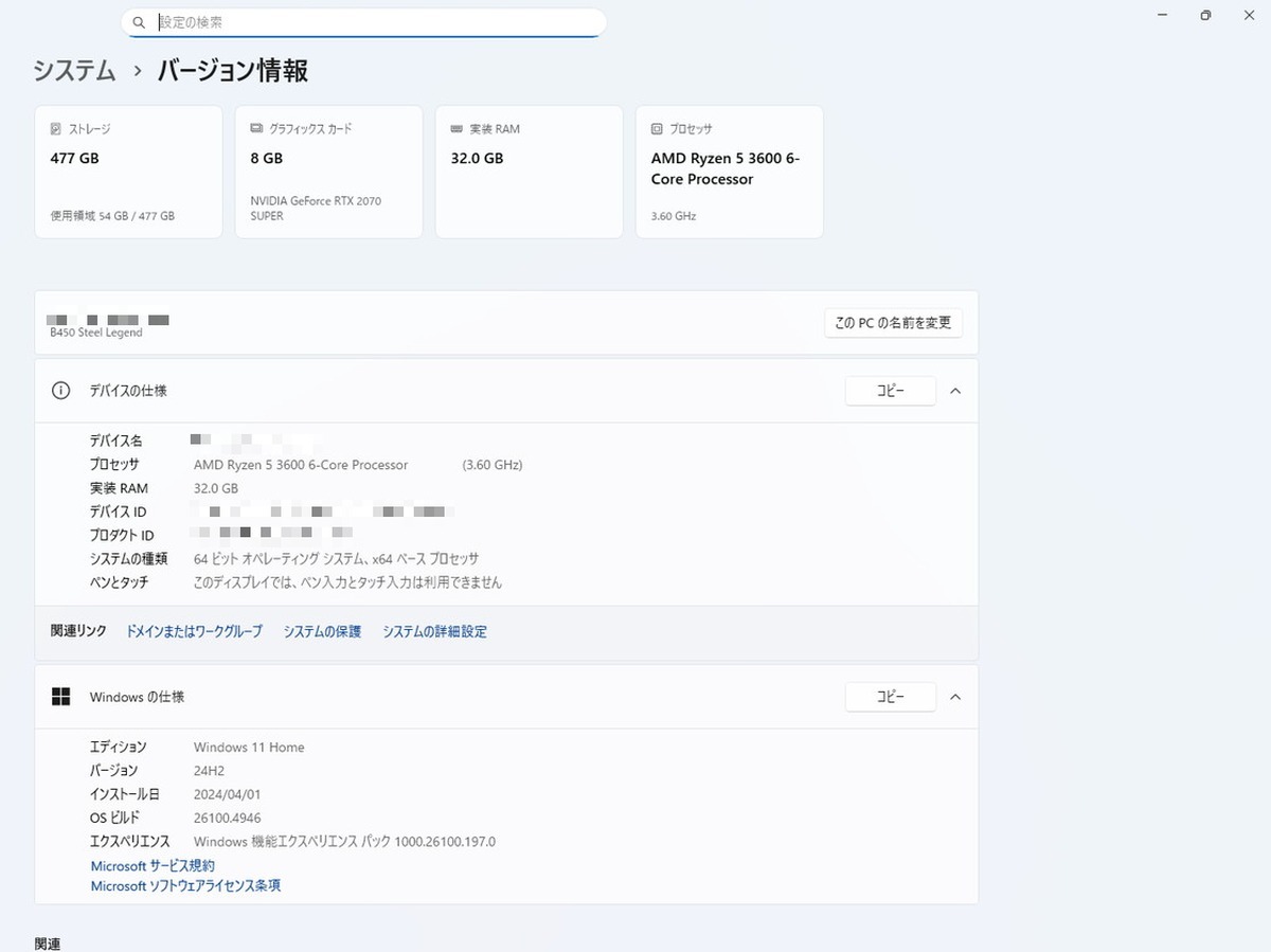 OS:Windows11 Home 24H2 クリーンインストール済み