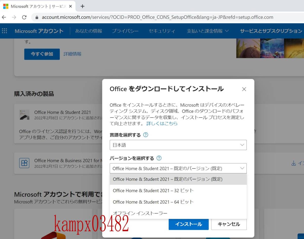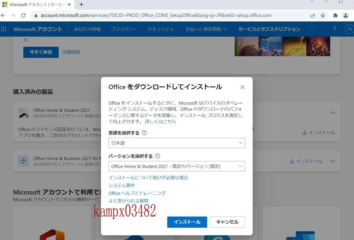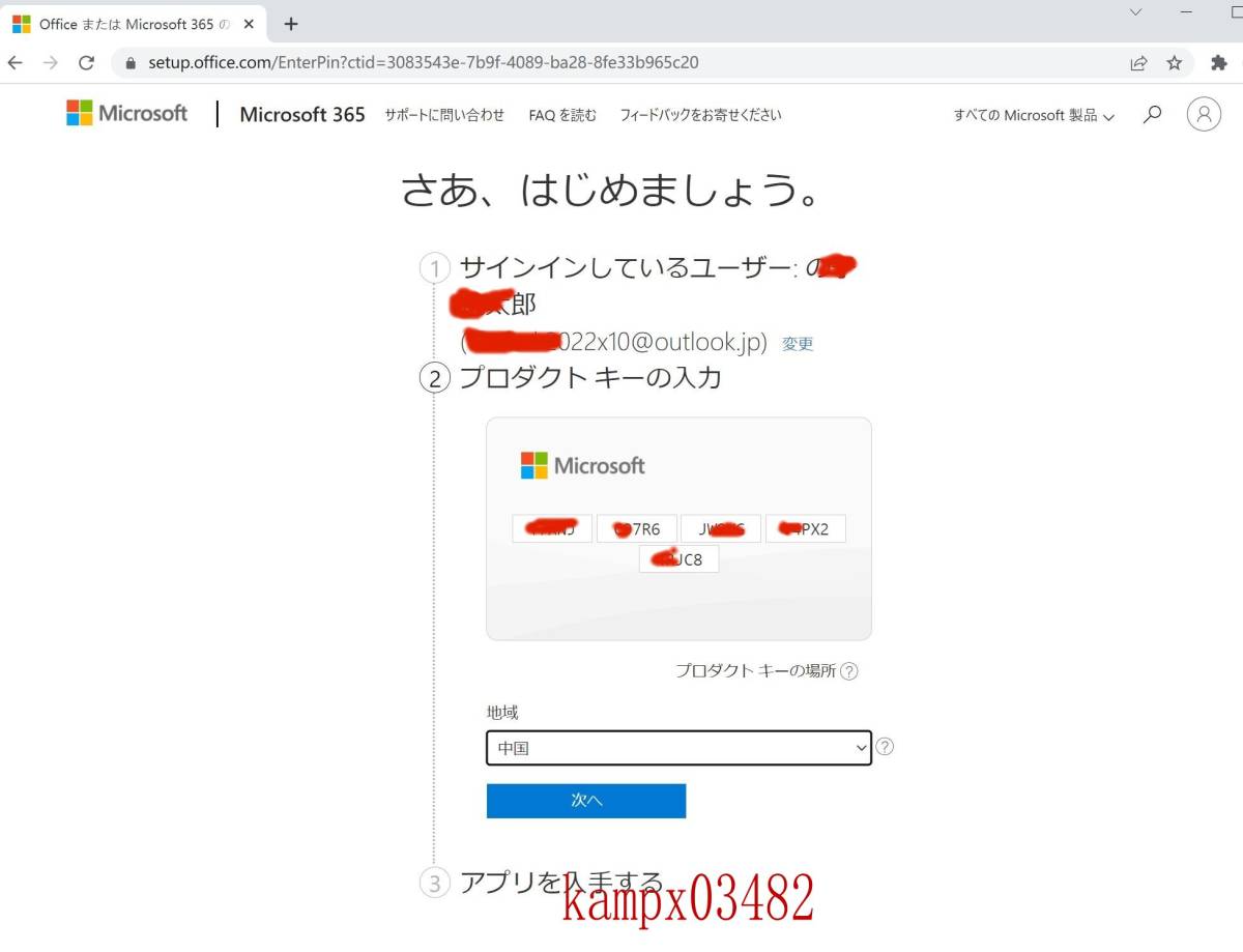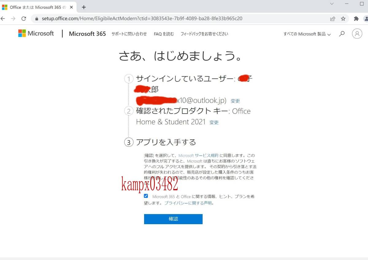 https://www.office.com/setup 」から、サインインし、先にアカウント登録することです。