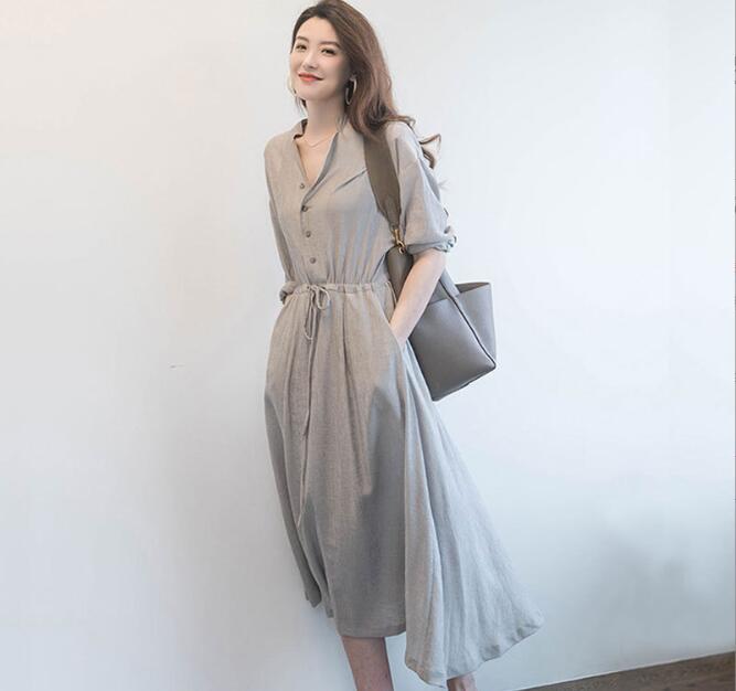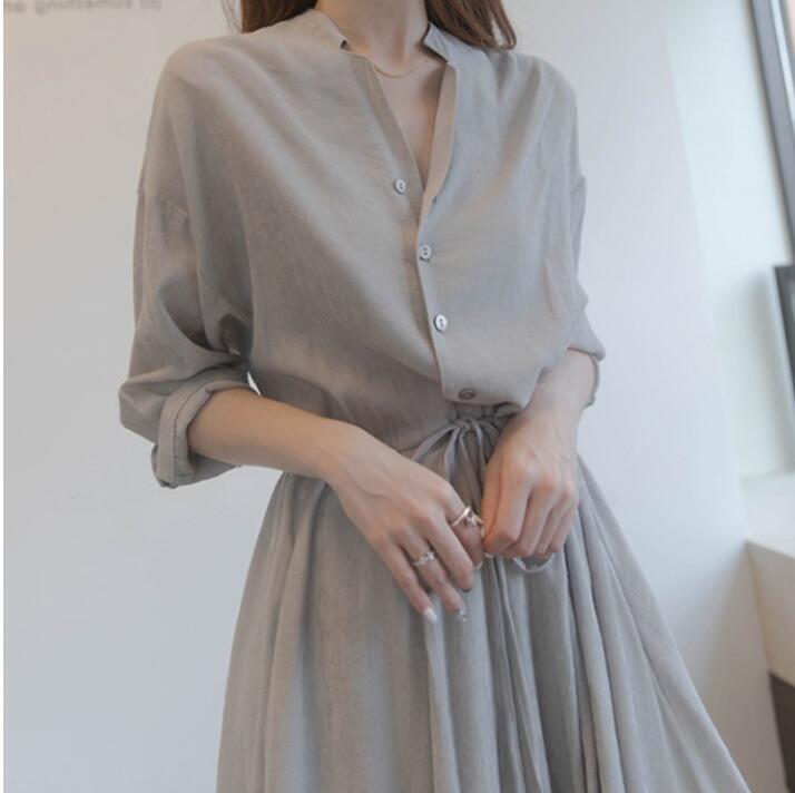 人気品 長袖ワンピース ひざ下丈ワンピ おしゃれ シンプル 大きいサイズあり M グレー