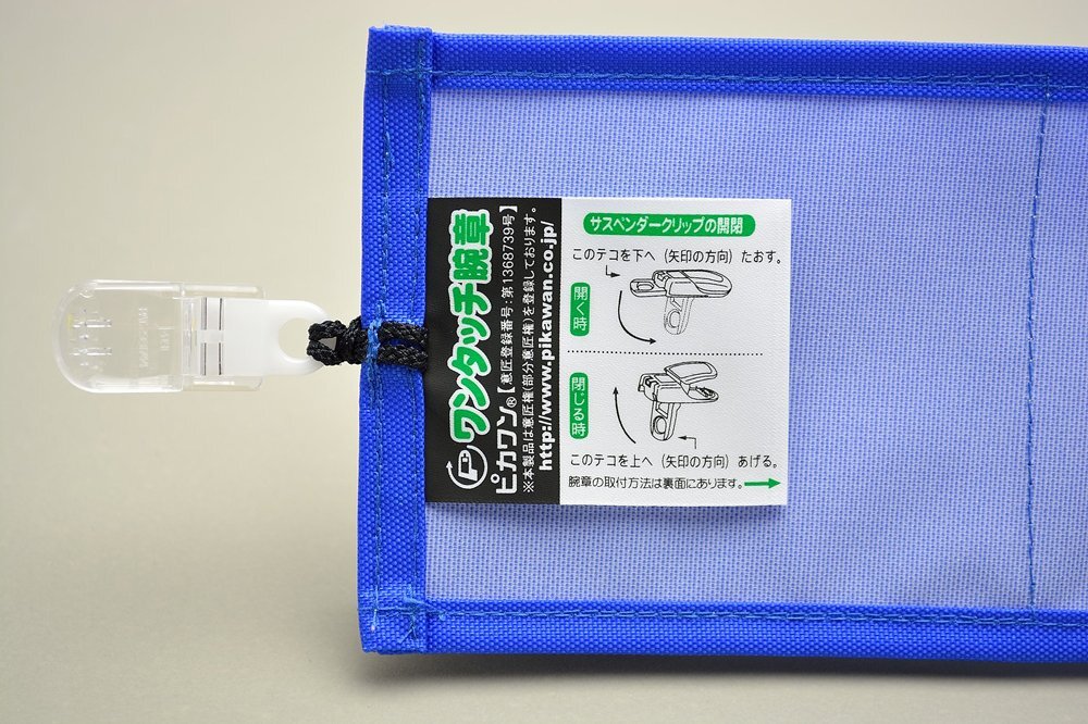 【特価商品】ワンタッチ腕章「撮影 ピカワン PHOTO」クリップ式 丈夫で軽量なナイロンオックス(布製)撥水加工 ブルー N110